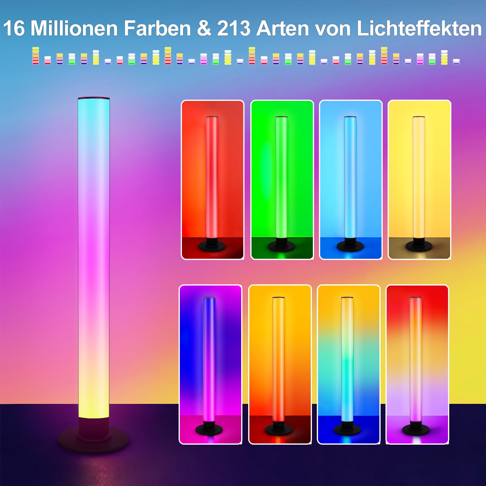 Höhepunkte:Dynamische Lichteffekte zum Selbermachen: 16 Millionen Farben zur Auswahl, die ein neuartiges Lichtton-Atmosphärenerlebnis schaffen.Helligkeit und Geschwindigkeit einstellbar: Stellen Sie die Lichtleiste auf Ihre bevorzugte Helligkeit und Geschwindigkeit ein. Eine Vielzahl von dynamischen Beleuchtungsszenenmodi, um die gewünschte Atmosphäre zu schaffen.Intelligente App-Steuerung: Die intelligenten Lichtleisten können die Lichteffekte einer Vielzahl von Szenenmodi über die APP umschalten, sodass Sie Ihre Lichtleiste einfach verwalten können.Musik-Sync-Modus: Die LED-Gaming-Leuchten mit einem eingebauten hochempfindlichen Mikrofon können synchron und ohne Verzögerung entsprechend dem Umgebungsgeräuschrhythmus Ihrer Musik-, Film- und Spiel-Audio auf das Licht reagieren.Mehrere Beleuchtungsszenenmodi: Jeder Wohnraum, jedes Restaurant, Hotel oder sogar Bars, besondere Geschenke oder Anlässe wie Geburtstagsfeiern, Jubiläen, Hochzeitsdekorationen, Weihnachten und Silvester.Das perfekte Geschenk: Weihnachten, Halloween, Thanksgiving, Neujahr, Vatertag, Muttertag, Valentinstag und Geburtstage sind die besten Geschenke für Liebhaber, Verwandte und Freunde.Produktspezifikationen:Produktgrösse: 37 x 7,8 x 3 cmMaterial: Aluminiumlegierung + KunststoffLeistung: 5WBetriebsspannung: DC 5V/2AFarbtemperatur: RGBGebühr: TYP-CLagerung: - 20℃~+45℃Arbeitstemperatur: - 20 ℃ ~ + 40 ℃Packungsinhalt: 2*LED Lightbar, 2*Basis, 1*Fernbedienung, 1*Benutzerhandbuch