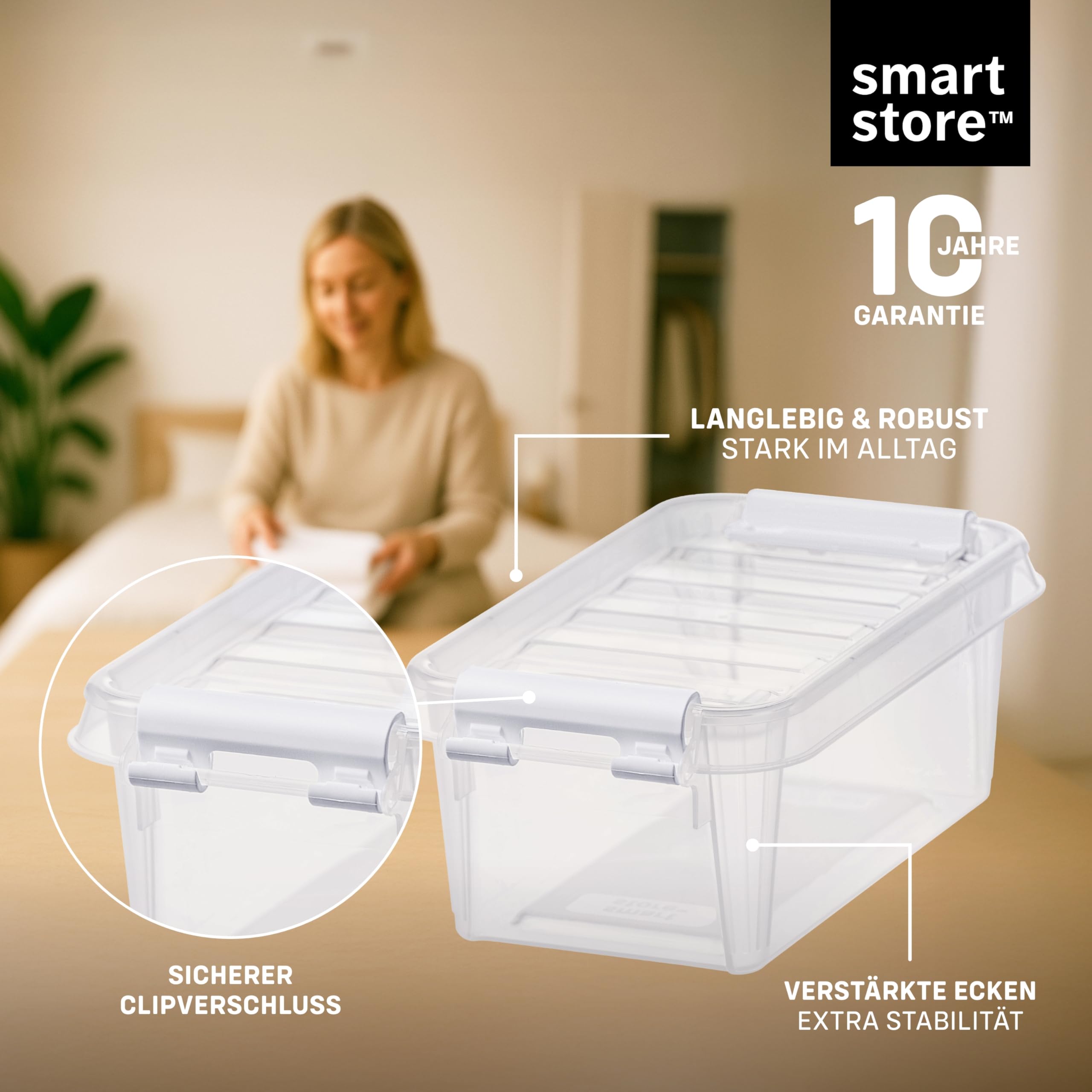 SmartStore - 10x kleine Aufbewahrungsboxen mit Deckel Classic 0,3L (15x9x6cm) | Stapelbare Box mit Deckel | Lebensmittelechte Kunststoffbox | Kleine Plastikbox mit Deckel & verstärkten Ecken