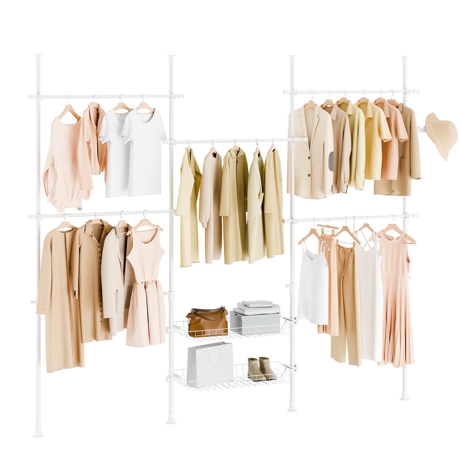 SoBuy Teleskop Kleiderständer, robuster Kleiderstange, verstellbarer offener Kleiderschrank mit Ablagen für Schlafzimmer, Garderobenständer, Weiss KLS04-II-W