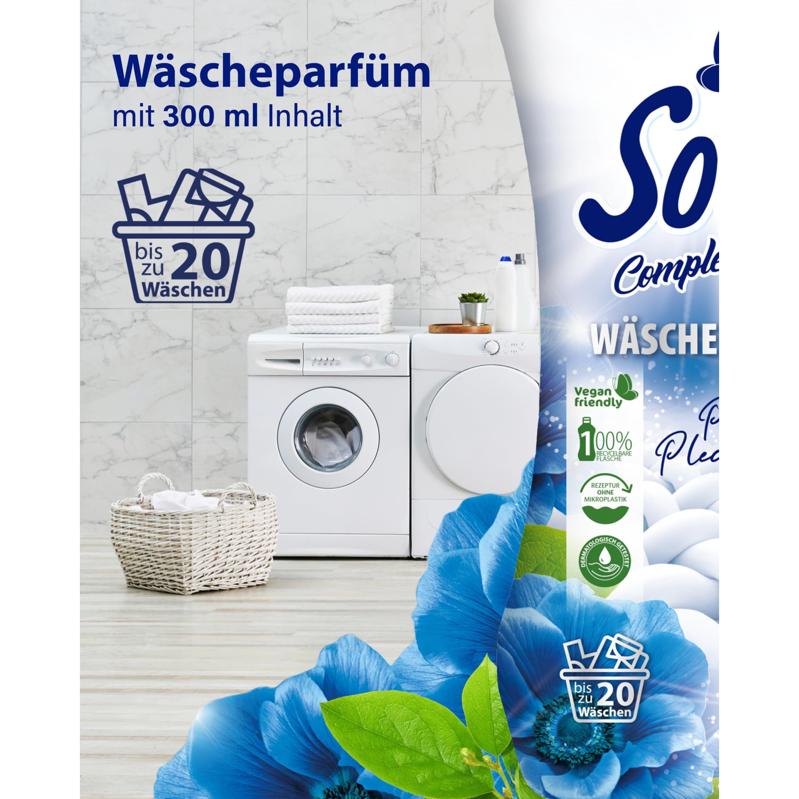 Mindestanzahl für die Bestellung von "Sofin Wäscheparfüm flüssig Pure Pleasure 300ml - Ohne Weichspüler, Für alle Textilien geeignet, Frischer & langanhaltender Wäscheduft für 20 Waschgänge" ist 1.