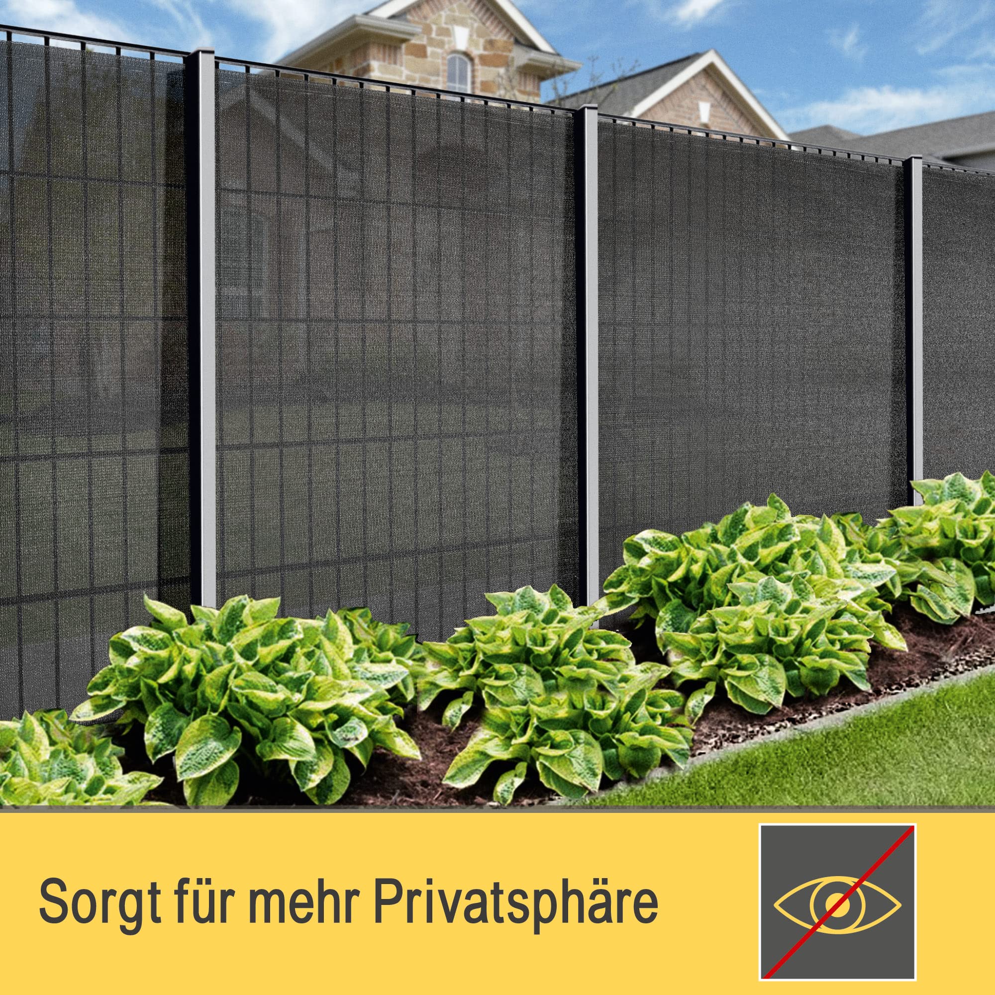 Sol Royal Sichtschutz SG 80 HDPE Der Sichtschutz SG 80 HDPE von Sol Royal schützt Sie vor neugierigen Blicken und bietet einen privaten Raum. Mit den im Lieferumfang enthaltenen Kabelbindern und den im Polyester integrierten Löchern im Abstand von 2 cm können Sie diese Sonnenblende einfach an Ihrer Terrasse, Veranda oder Ihrem Balkon befestigen. Mit der Grammatur von 165 g/m² ist dieser blickdichte Sichtschutz aus HDPE besonders widerstandsfähig gegen Wind und unangenehmes Wetter. Der Stoff ist atmungsaktiv: Luft und Feuchtigkeit können durchströmen, damit der Schimmel im Voraus besiegt wird. Darüber hinaus bietet Ihnen dieser Sichtschutz einen hervorragenden UV-Schutz von 90 %. Die schädliche UV-Strahlung wird blockiert und so Ihr Garten und Ihre Beete werden geschützt. Sie können zwischen den Farben Anthrazit oder Grün und den Höhen von 100, 150 oder 200 cm wählen. In Bezug auf die Breite haben Sie die Wahl zwischen 1000cm, 2500cm und 5000cm. Anzahl der Kabelbinder: 50 Stück für 1000 cm, 100 Stück für 2500 cm, 200 Stück für 5000 cm. Das Produkt wird gefaltet in der Verpackung geliefert und sieht dadurch kleiner aus.