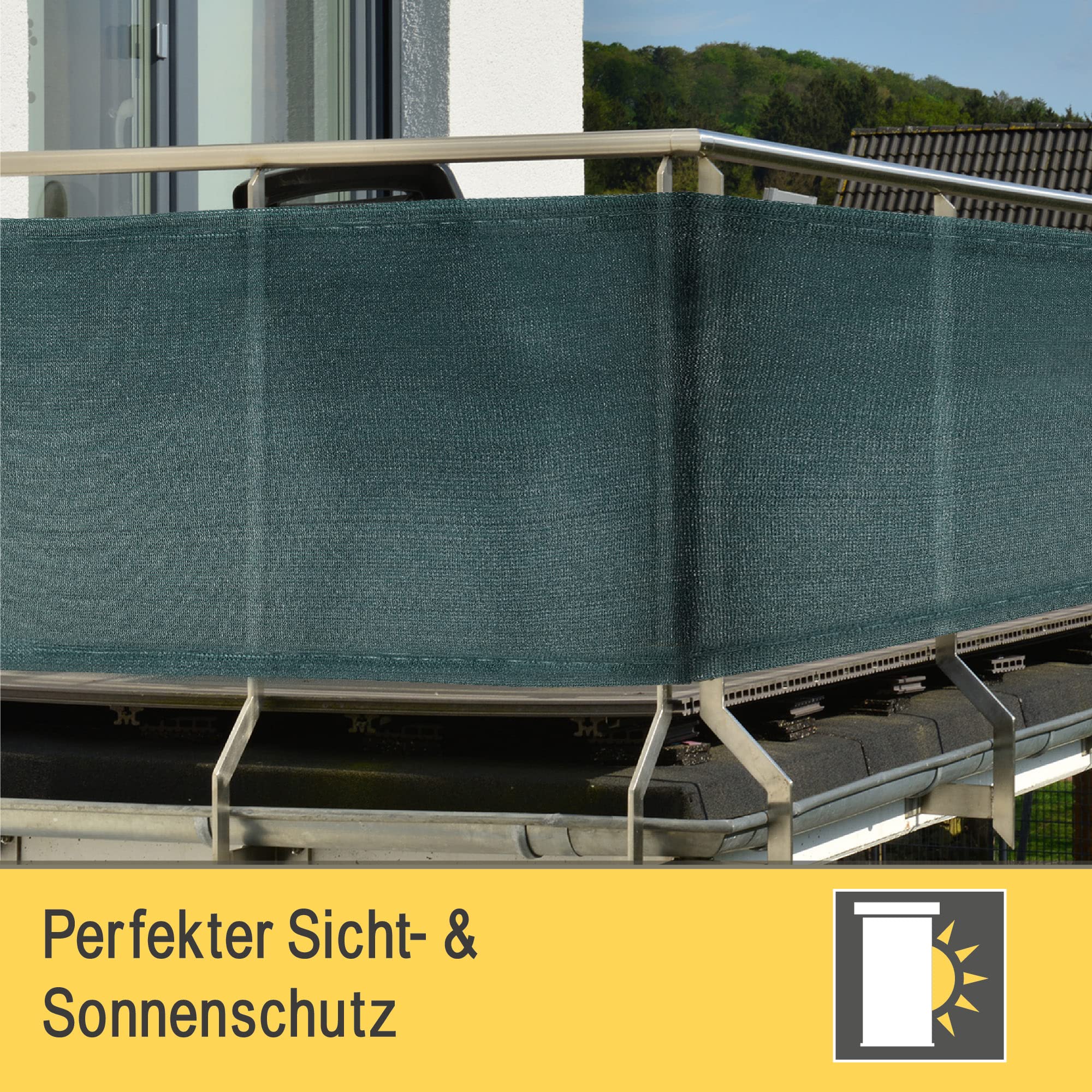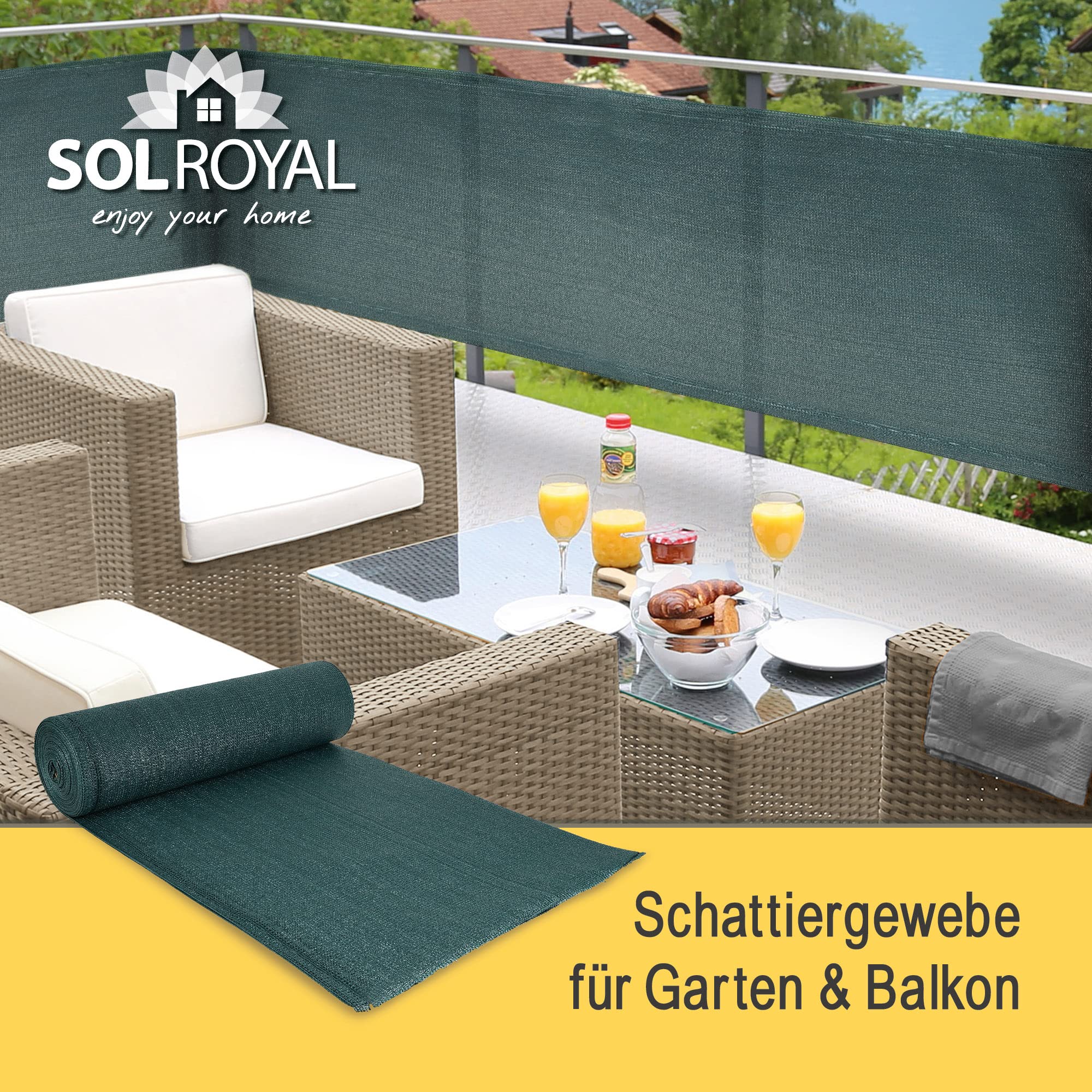Sol Royal Schattiergewebe SG 80 HDPE Die Schattiernetz SG 80 HDPE der Marke Sol Royal bietet den perfekten Schutz vor neugierigen Blicken und schützt Ihre Privatspähre. Mit Hilfe dem mitgelieferten Kabelbinder und den im Abstand von 2cm angebrachten Löchern lässt sich dieses Windschutznetz kinderleicht an Ihrem Balkon, Ihrer Veranda oder Terrasse befestigen. Mit einer Grammatur von 165g/m² ist dieses aus 100% Polyethylen bestehende HDPE-Strickgewebe besonders windfest und hält jeder Witterung stand. Das Gewebe ist atmungsaktiv, Luft und Feuchtigkeit kommen durch, so dass Schimmel keine Chance hat. Diese Balko und Terassen Verkleidung bietet einen hervorragenden UV-Schutz. 90% der schädlichen UV-Strahlung werden abgeblockt und schützt so Ihren Garten und Beete. Diesen Sichtschutz erhalten Sie wahlweise in den Farben Anthrazit oder Grün, jeweils mit einer Höhe von 100, 150 bis 200cm. Bei der Breite können Sie zwischen 1000cm, 2500cm und 5000cm wählen. Produktdetails: - Marke: Sol Royal - Serienname: SG 80 - Material: 100% Polyethylen / HDPE-Strickgewebe - Grammatur: 165g/m² - Befestigung: Kabelbinder 50, 100, 200 - Pflegehinweis: Einfach mit einem feuchten Tuch reinigen - Farben: Anthrazit / Grün - Grösse wählbar: Breite: 1000, 2500, 5000 cm x Höhe: 100, 150, 200 cm - Lieferumfang: 1 Schattiergewebe und Kabelbinder - UV-Schutz: blockt 90% der UV-Strahlen - Schattiergewebe / Sonnenschutznetz: Zur Beschattung von Gewächshäusern, Beeten und Wintergärten -Zaunsichtschutznetz für: im Garten, an Balkonen und Terrassen, bei Sportveranstaltungen für Schulen und Kindergärten