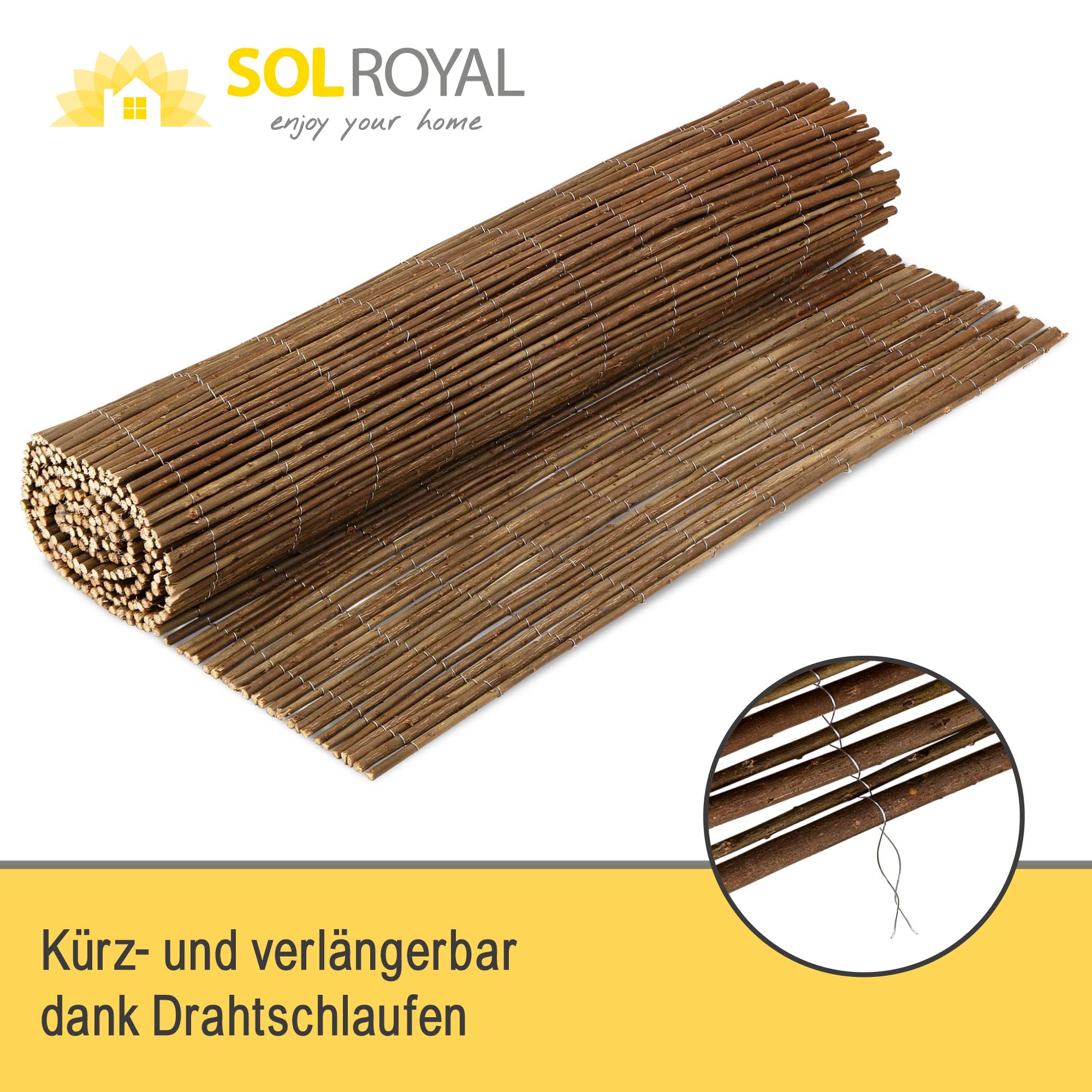Sol Royal Weidenmatte Sichtschutz für Gartenzaun Natur 180x500 cm – Leichte Montage & Stabiler Weidenzaun Sichtschutzmatte für Garten, Terrasse & Zaun Sichtschutz Weide Windschutz – SolVision W79