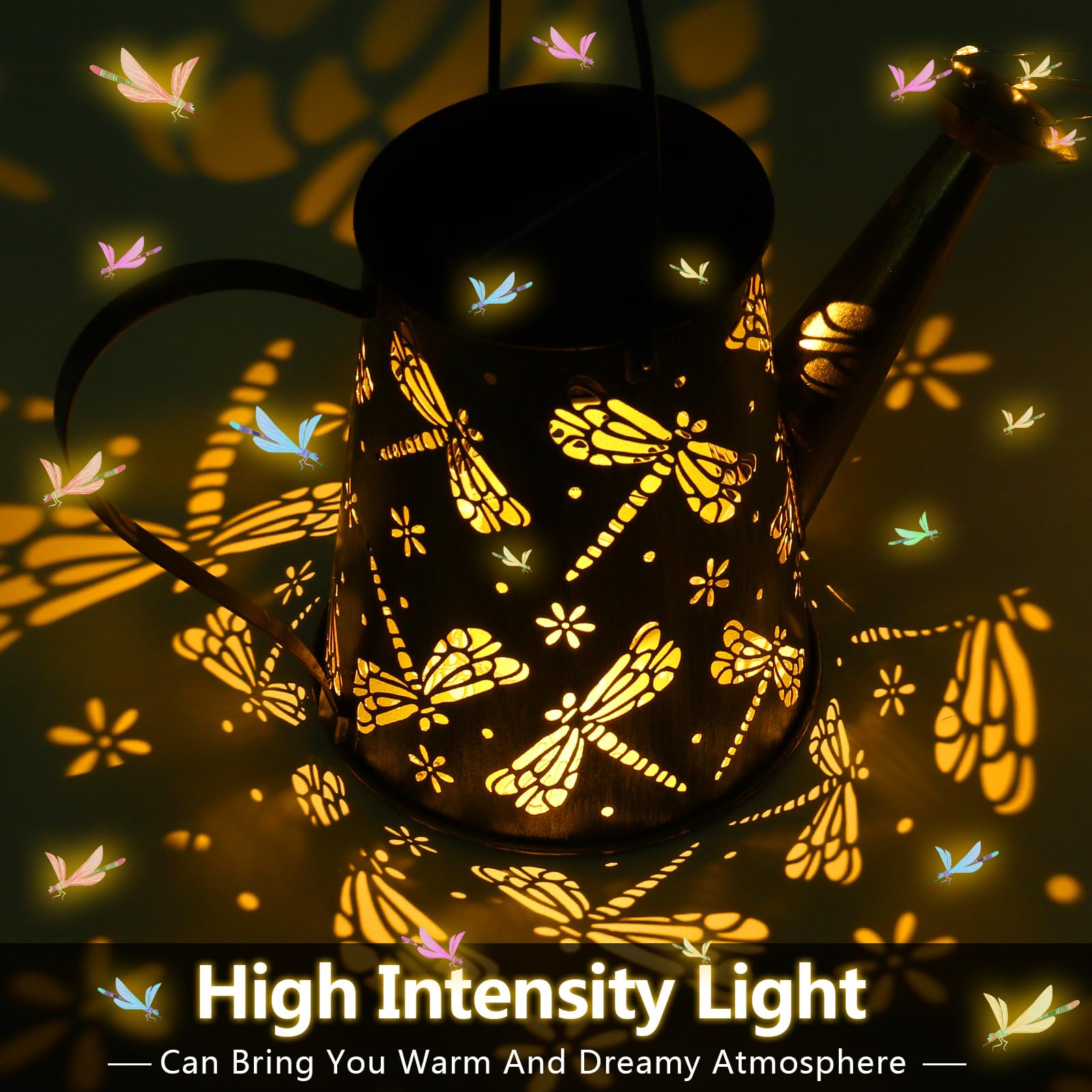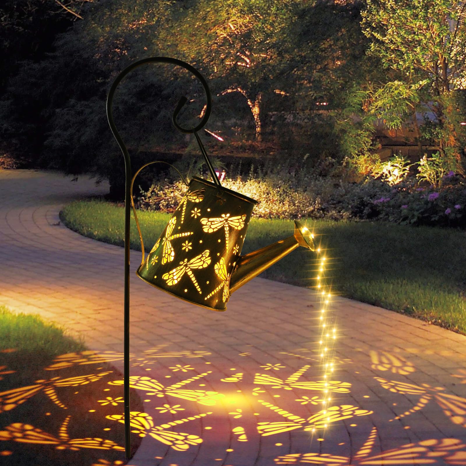 Solar Giesskanne Lichterkette Aussen, Solarlampen für Aussen Garten LED Lichter,Vintage Lichterkette Aussen mit Halterung Libellen Shower Garten Leuchten Wasserdicht für Garden Terrasse Balkon (Libelle)