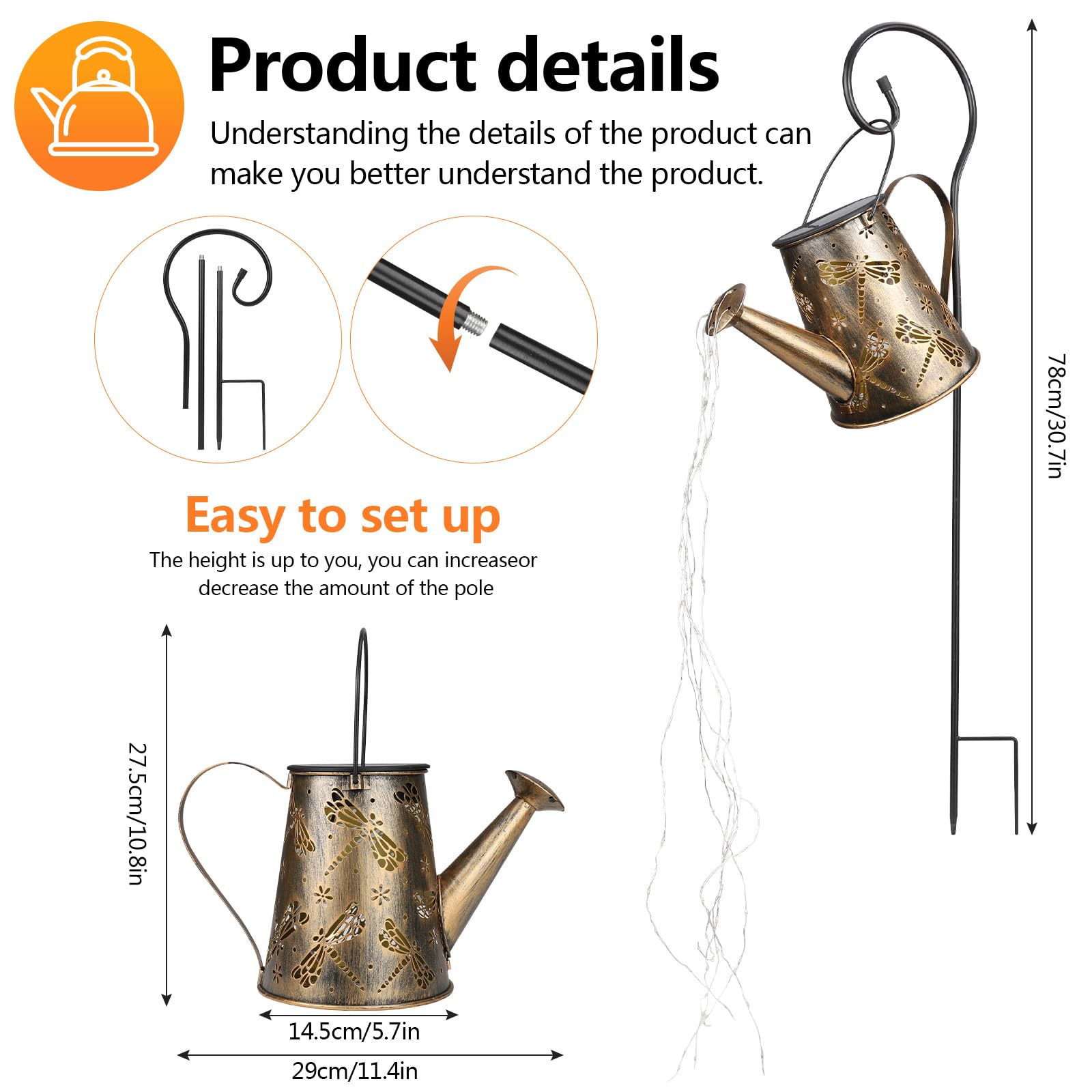 Paket enthalten: 1 Giesskanne mit Lichtern 1 Schäferhaken