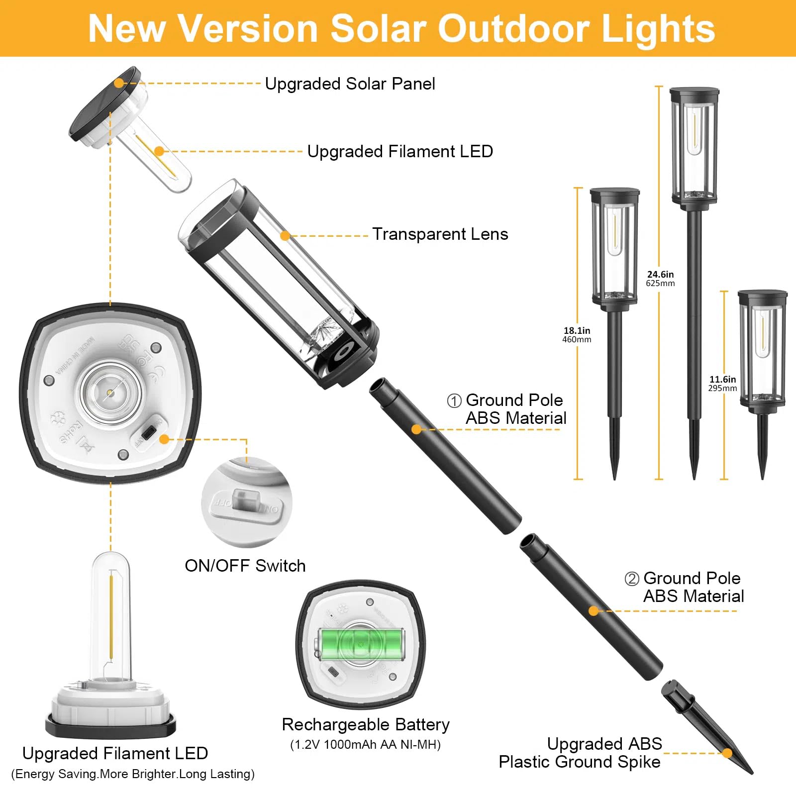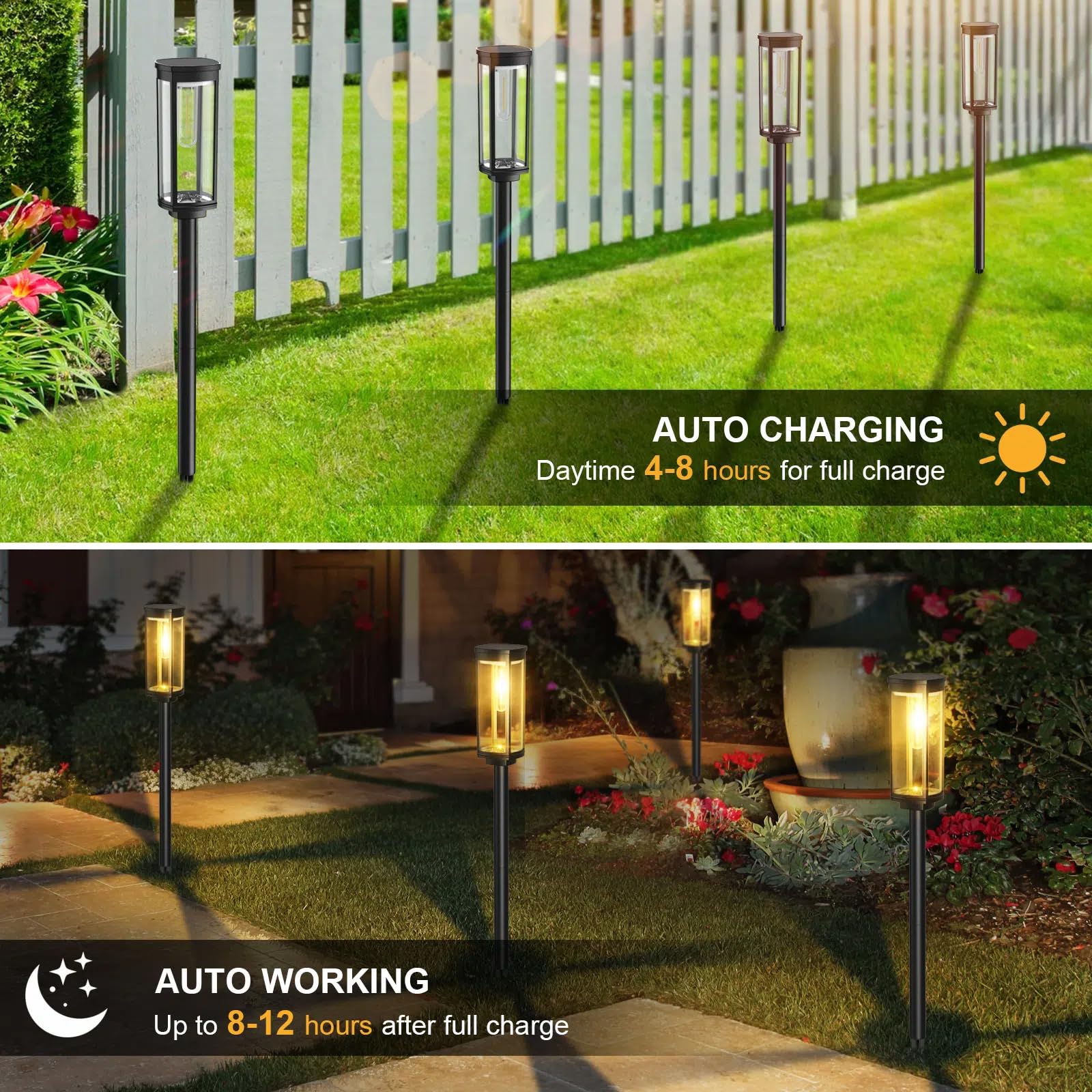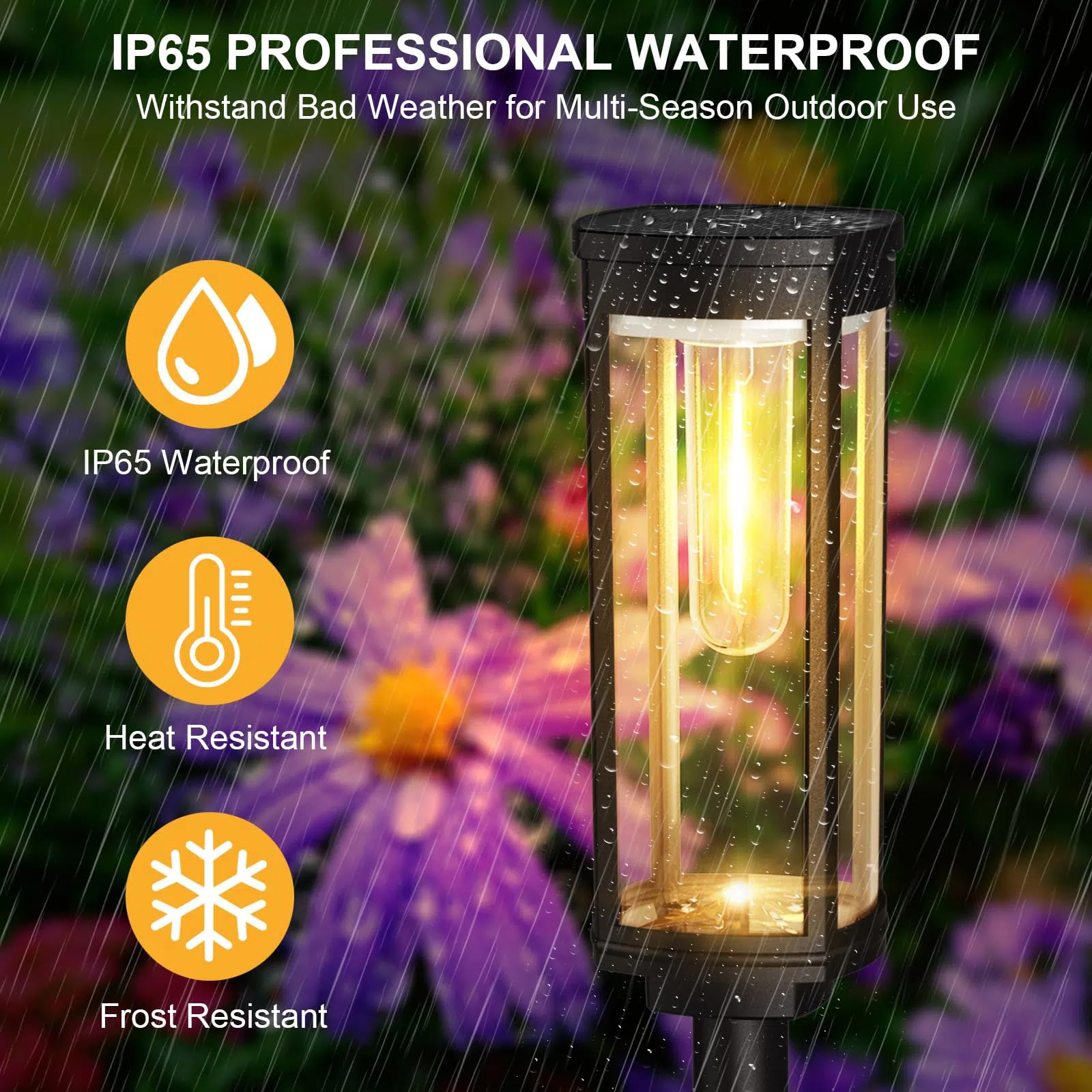 Solarlampen für Aussen Garten, Wasserdichte Solarleuchten mit Warmweissem Wolfram-Licht, Winterfeste Gartenlampen mit Automatischem Ein/Aus für Aussenbereiche wie Terrasse, Rasen, Hof und Wege (6 Stück)