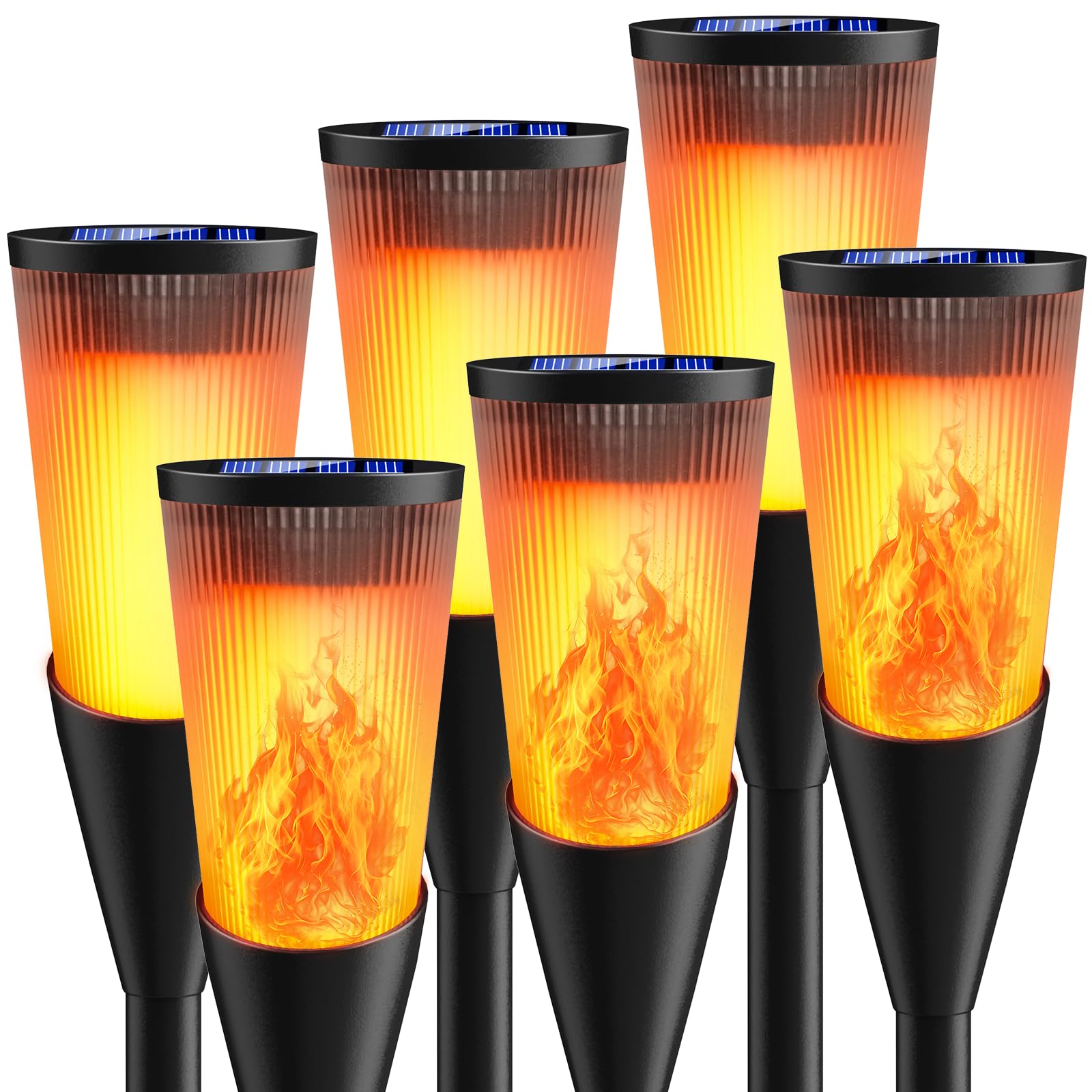 Solarlampen für Aussen Gartenfackeln, 6Stück 2Modi Solarleuchten für Draussen,IP65 Wetterfest Fackeln Lampe,Solar Bodenleuchten mit Realistischen Flammeneffekt für Gartenbeleuchtung,Weg,Hinterhöfe,Rasen