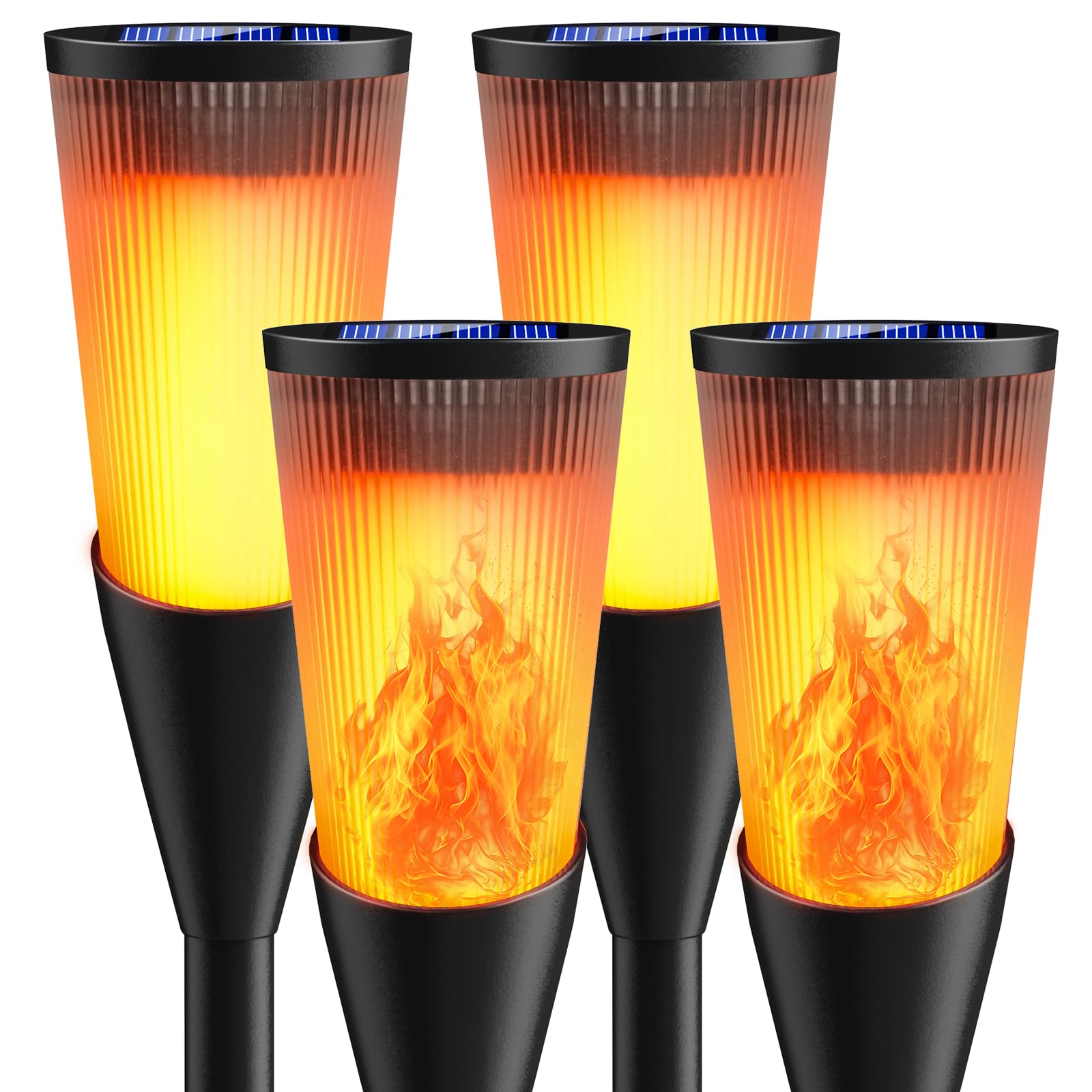 Solarlampen für Aussen Gartenfackeln, 4 Stück 2 Modi Solarleuchten für Draussen, IP65 Wetterfest Fackeln Lampe Gartenleuchten mit Realistischen Flammen Auto EIN/Aus für Garten Deko Weg, Hinterhöfe,Rasen