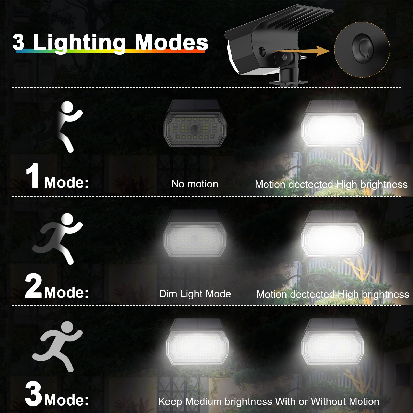 Solarlampen für Aussen mit Bewegungsmelder, 2 Stück 43LED SolarStrahler IP65 Wasserdicht Solarleuchten für Aussen Garten, 3 Modi Solar Gartenleuchten 6500K Kaltweiss Solar Strahler Aussen Weg Hof Gehweg