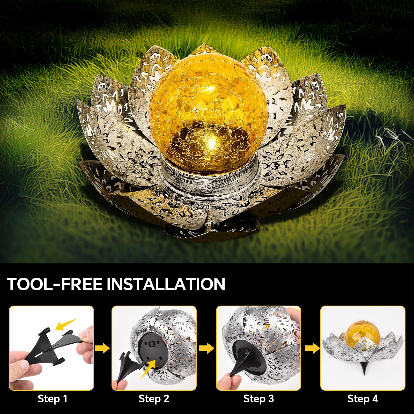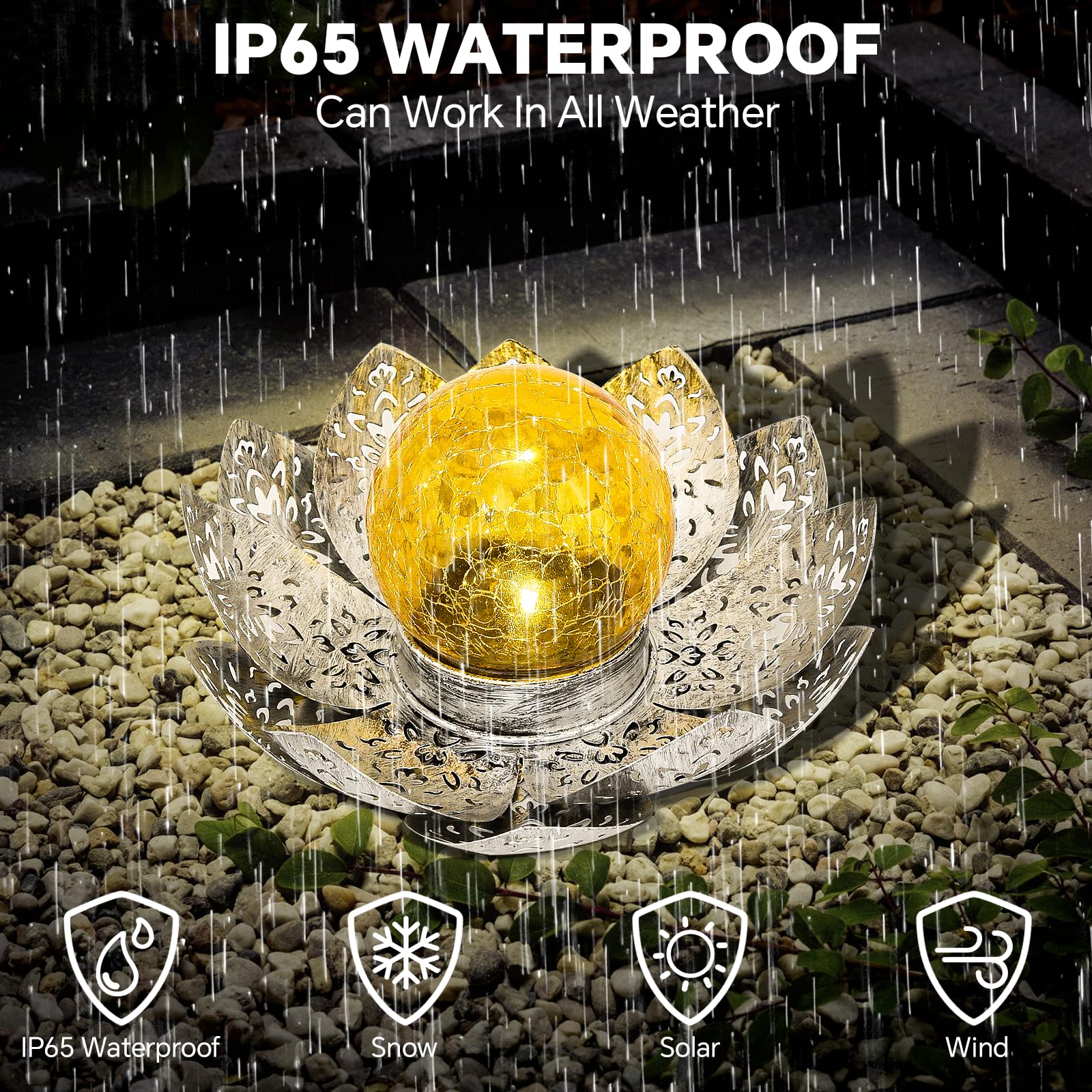 ORHOMELIFE Solarlampen für Aussen Solar Lotus Garten Deko Solar Bodenleuchte für Garten Warmes Licht Gartenleuchten für Aussen Terassendeko LED Solarleuchten Wasserdicht Grau