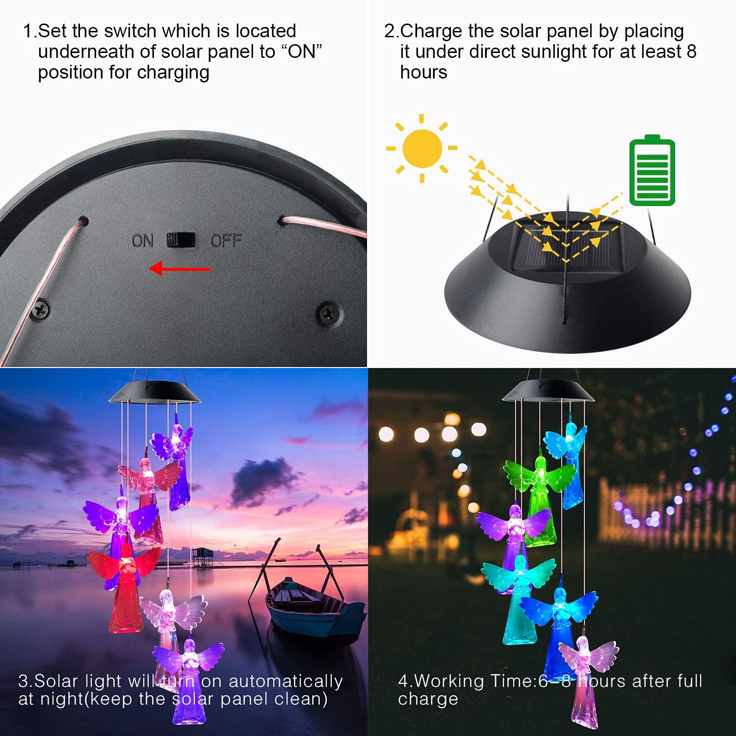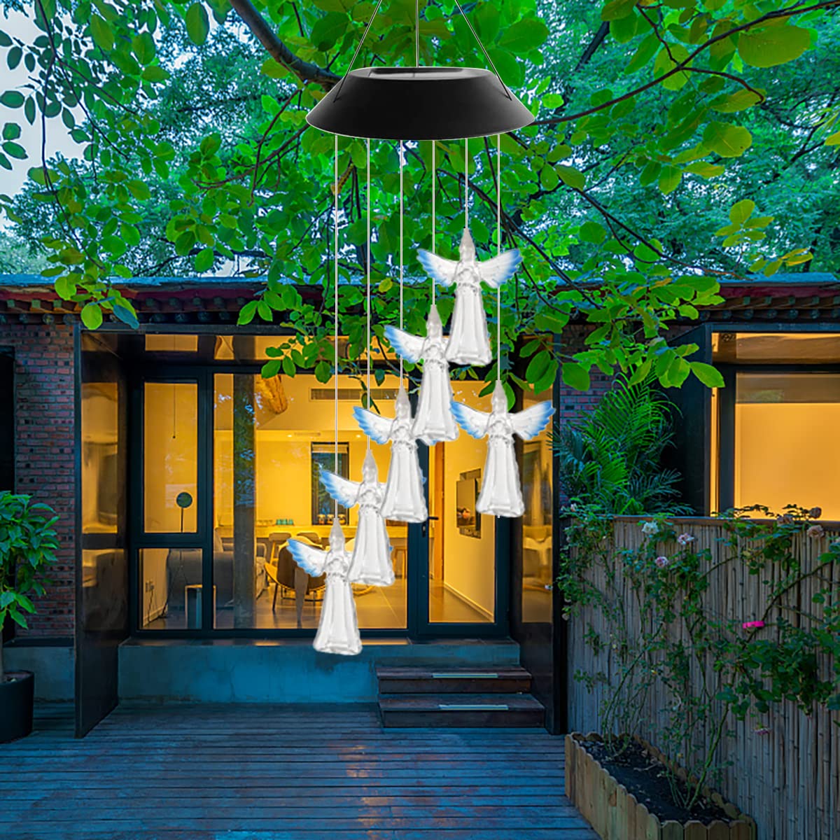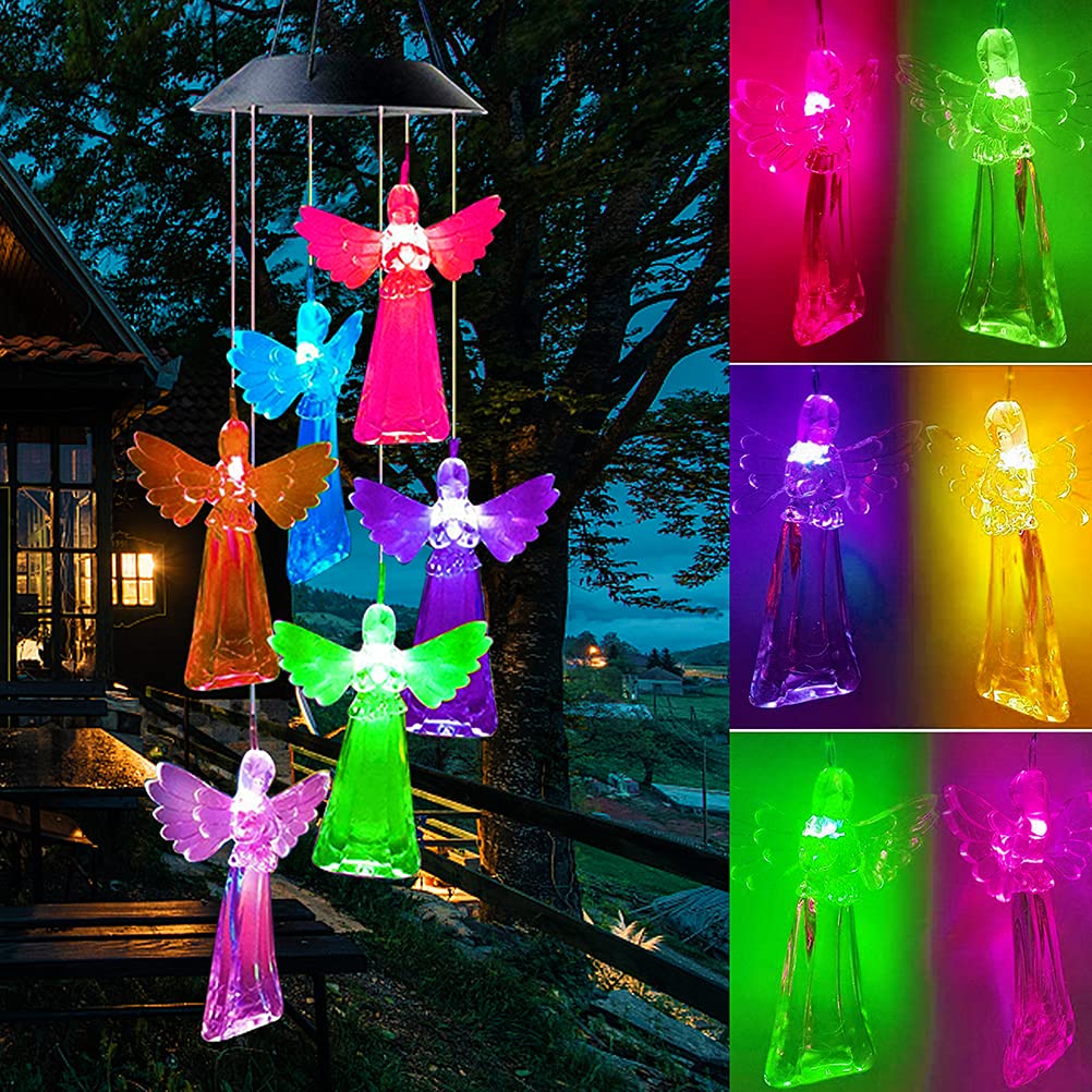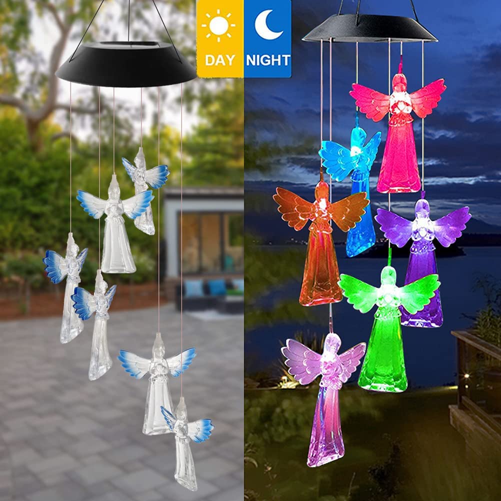 Solarleuchten Windspiele für Draussen,Schmetterling Windspiele Beleuchtung Farbwechsel Solar LED,Hängeleuchte Deko für Terrasse,Garten Party,Baum (Engel)