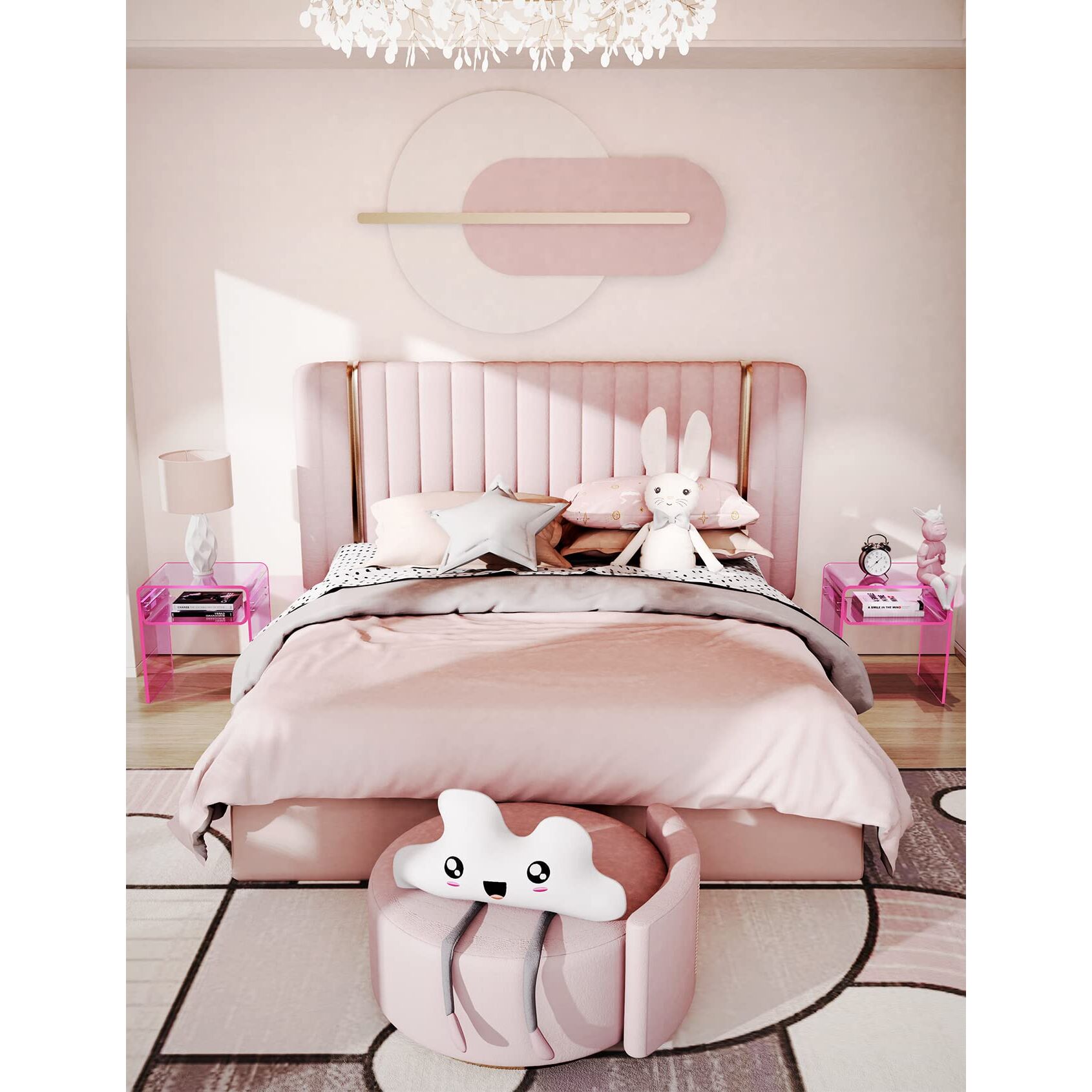 solaround Acryl Beistelltisch Nachttisch, Transparent U-Form Tisch, für Schlafzimmer Wohnzimmer, 40 x 30 x 50 cm (Rosa)