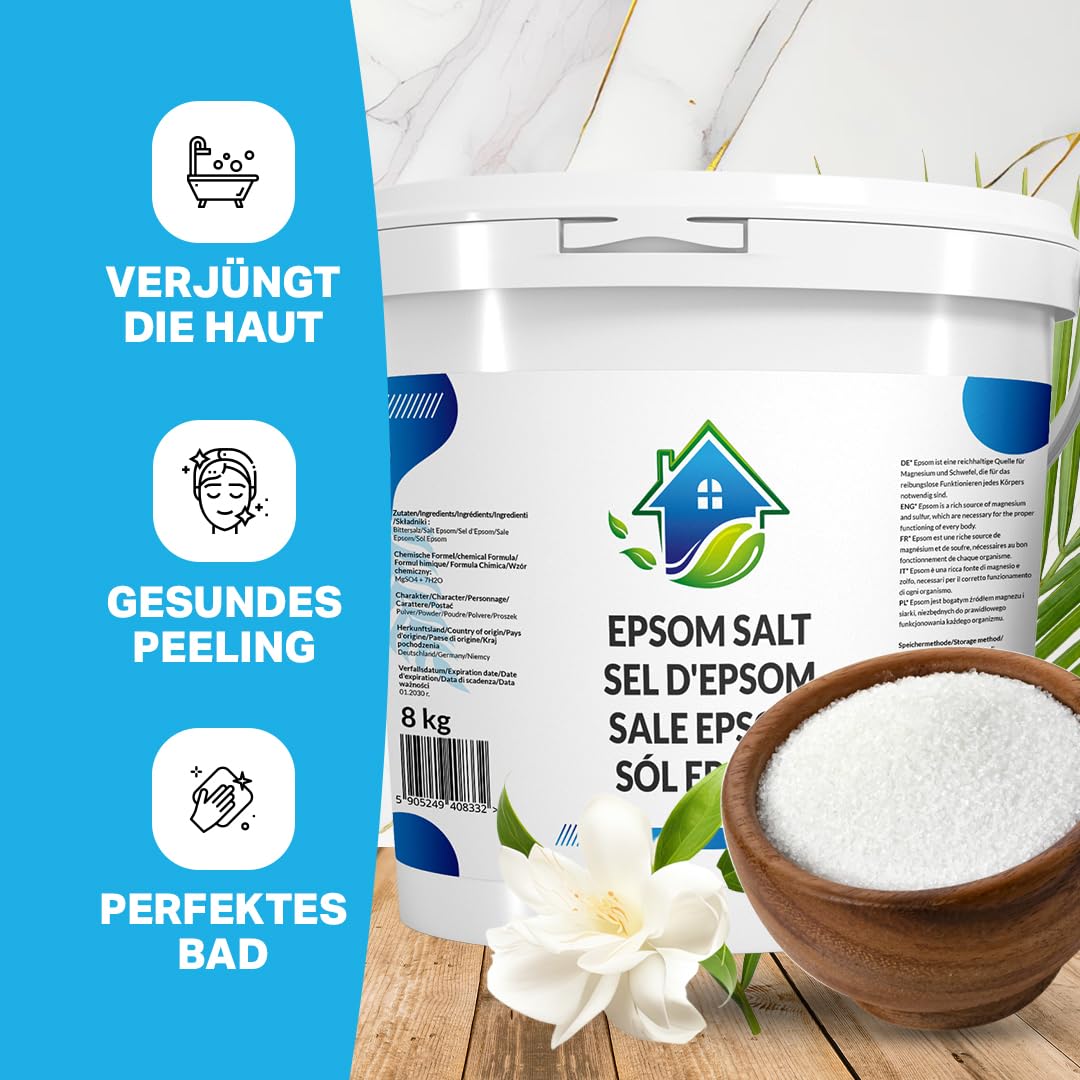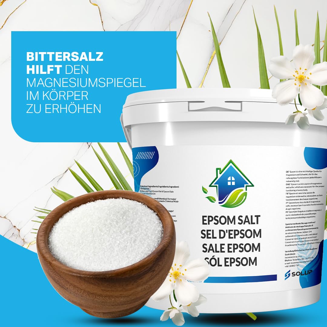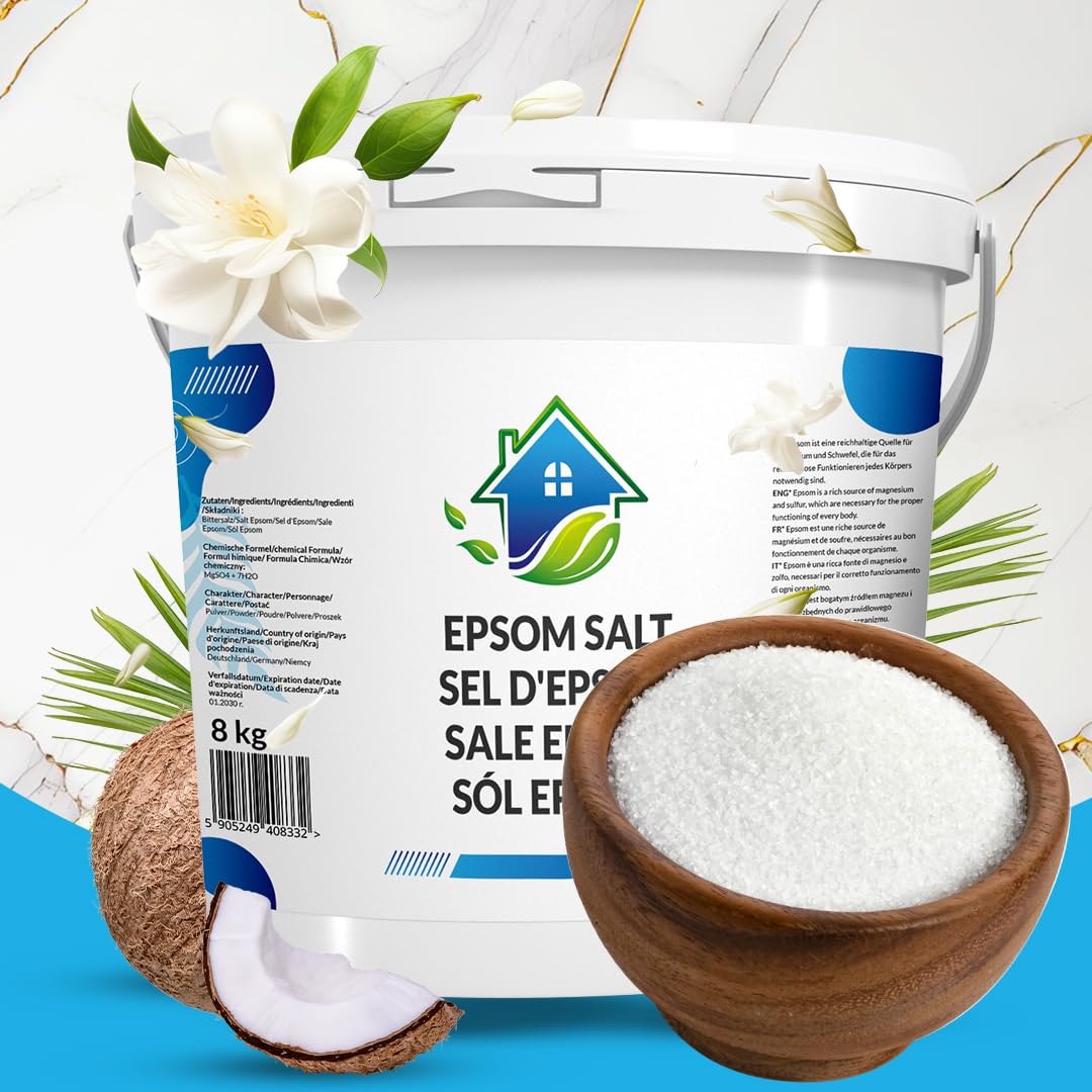 Entdecken Sie das Geheimnis eines gesunden und ausgeglichenen Lebensstils mit unserem hochwertigen Epsom Salz 8 Kg. Unser Badesalz bietet nicht nur ein luxuriöses Spa-Erlebnis, sondern ist auch ein vielseitiger Helfer für Gesundheit, Schönheit und Gartenpflege. Unser Epsom Salz, gewonnen aus reinem Magnesiumsulfat, ist ein Allrounder für Ihr Wohlbefinden. Tauchen Sie ein in ein entspannendes Bad und lassen Sie die Sorgen des Alltags hinter sich. Die reinigende Wirkung des Bittersalzes hilft Ihrer Haut, ihre natürliche Balance wiederzufinden und fördert einen strahlenden Teint. Gleichzeitig unterstützt das Epsom Salz Badesalz die Regeneration Ihrer Muskeln nach körperlicher Anstrengung, lindert Gelenkschmerzen und sorgt für tiefgreifende Entspannung. Neben der körperlichen Erholung ist unser Produkt ein effektives Mittel zur Darmreinigung. Epsom Salz zur Darmreinigung kann dabei helfen, Giftstoffe aus dem Körper zu entfernen und die Verdauung zu fördern. Erleben Sie ein Gefühl von Leichtigkeit und gesteigerter Energie. Auch Ihre Pflanzen werden es Ihnen danken. Verwenden Sie unser Bittersalz als natürlichen Dünger, um das Wachstum Ihrer Pflanzen zu fördern und die Bodenqualität zu verbessern. Es ist die perfekte Wahl für alle Gartenliebhaber, die auf natürliche Produkte setzen. Für die tägliche Pflege bieten wir Fussbadesalz, das Ihre Füsse verwöhnt und belebt. Nach einem langen Tag sind ein Fussbad und die entspannende Wirkung unseres Salzes genau das Richtige, um Schwellungen zu reduzieren und müde Füsse zu revitalisieren. Unser Epsom Salz 8kg Paket ist die ideale Grösse für regelmässige Anwendungen. Sie erhalten ein Produkt von höchster Qualität, das vielfältige Bedürfnisse abdeckt – vom entspannenden Bad über die Haut- und Haarpflege bis hin zur Gartenpflege. Vertrauen Sie auf die Kraft der Natur mit unserem Epsom Salz. Es ist mehr als nur ein Badesalz; es ist ein Weg zu einem gesünderen, ausgeglicheneren und schöneren Leben.