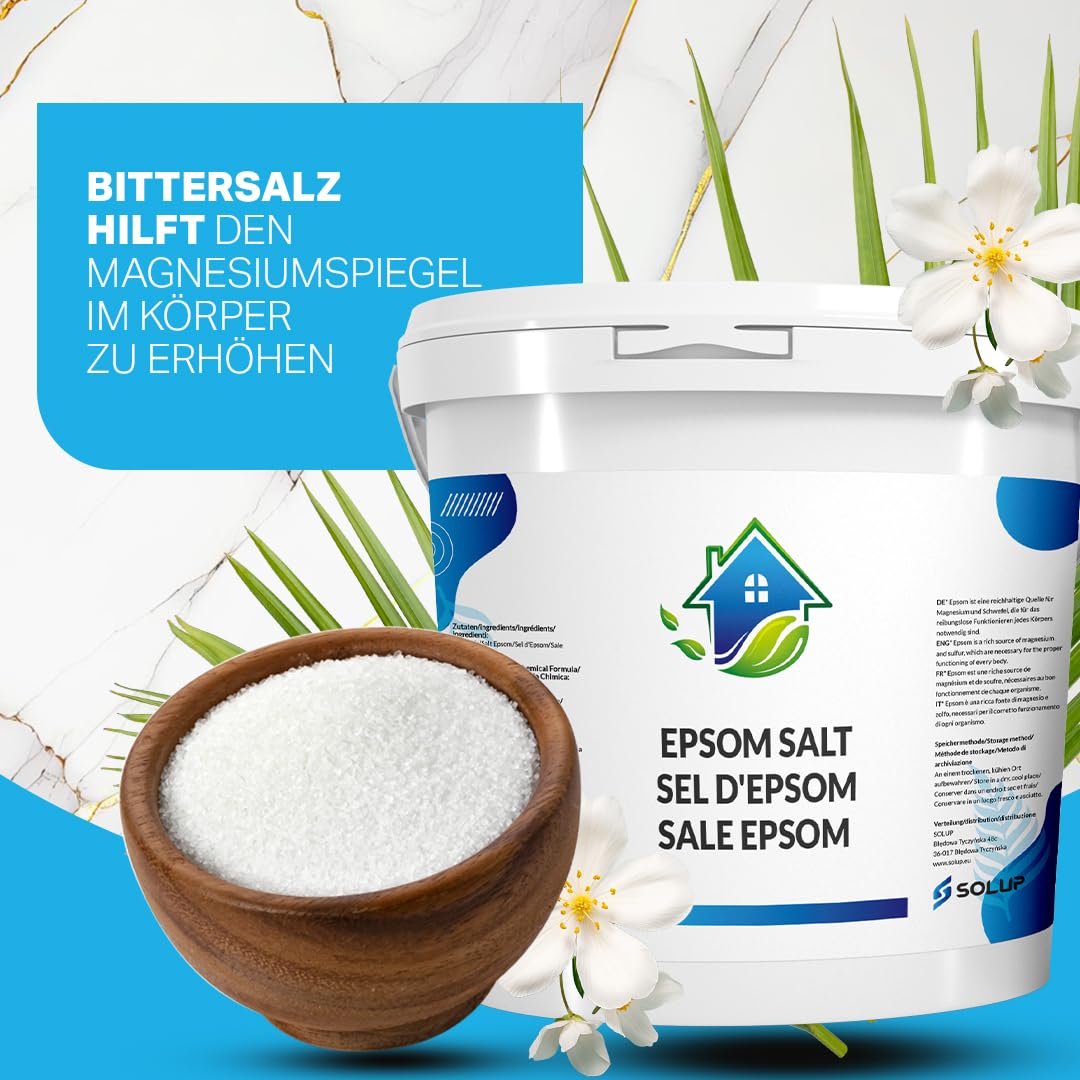 Entdecken Sie das Geheimnis eines gesunden und ausgeglichenen Lebensstils mit unserem hochwertigen Epsom Salz 4 Kg. Unser Badesalz bietet nicht nur ein luxuriöses Spa-Erlebnis, sondern ist auch ein vielseitiger Helfer für Gesundheit, Schönheit und Gartenpflege. Unser Epsom Salz, gewonnen aus reinem Magnesiumsulfat, ist ein Allrounder für Ihr Wohlbefinden. Tauchen Sie ein in ein entspannendes Bad und lassen Sie die Sorgen des Alltags hinter sich. Die reinigende Wirkung des Bittersalzes hilft Ihrer Haut, ihre natürliche Balance wiederzufinden und fördert einen strahlenden Teint. Gleichzeitig unterstützt das Epsom Salz Badesalz die Regeneration Ihrer Muskeln nach körperlicher Anstrengung, lindert Gelenkschmerzen und sorgt für tiefgreifende Entspannung. Neben der körperlichen Erholung ist unser Produkt ein effektives Mittel zur Darmreinigung. Epsom Salz zur Darmreinigung kann dabei helfen, Giftstoffe aus dem Körper zu entfernen und die Verdauung zu fördern. Erleben Sie ein Gefühl von Leichtigkeit und gesteigerter Energie. Auch Ihre Pflanzen werden es Ihnen danken. Verwenden Sie unser Bittersalz als natürlichen Dünger, um das Wachstum Ihrer Pflanzen zu fördern und die Bodenqualität zu verbessern. Es ist die perfekte Wahl für alle Gartenliebhaber, die auf natürliche Produkte setzen. Für die tägliche Pflege bieten wir Fussbadesalz, das Ihre Füsse verwöhnt und belebt. Nach einem langen Tag sind ein Fussbad und die entspannende Wirkung unseres Salzes genau das Richtige, um Schwellungen zu reduzieren und müde Füsse zu revitalisieren. Unser Epsom Salz 10kg Paket ist die ideale Grösse für regelmässige Anwendungen. Sie erhalten ein Produkt von höchster Qualität, das vielfältige Bedürfnisse abdeckt – vom entspannenden Bad über die Haut- und Haarpflege bis hin zur Gartenpflege. Vertrauen Sie auf die Kraft der Natur mit unserem Epsom Salz. Es ist mehr als nur ein Badesalz; es ist ein Weg zu einem gesünderen, ausgeglicheneren und schöneren Leben.