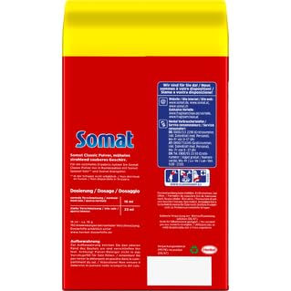 • Für ein perfektes Spülergebnis wird die Nutzung von Somat Pulver Classic in Kombination mit dem Somat Spezial-Salz und dem Somat Klarspüler empfohlen