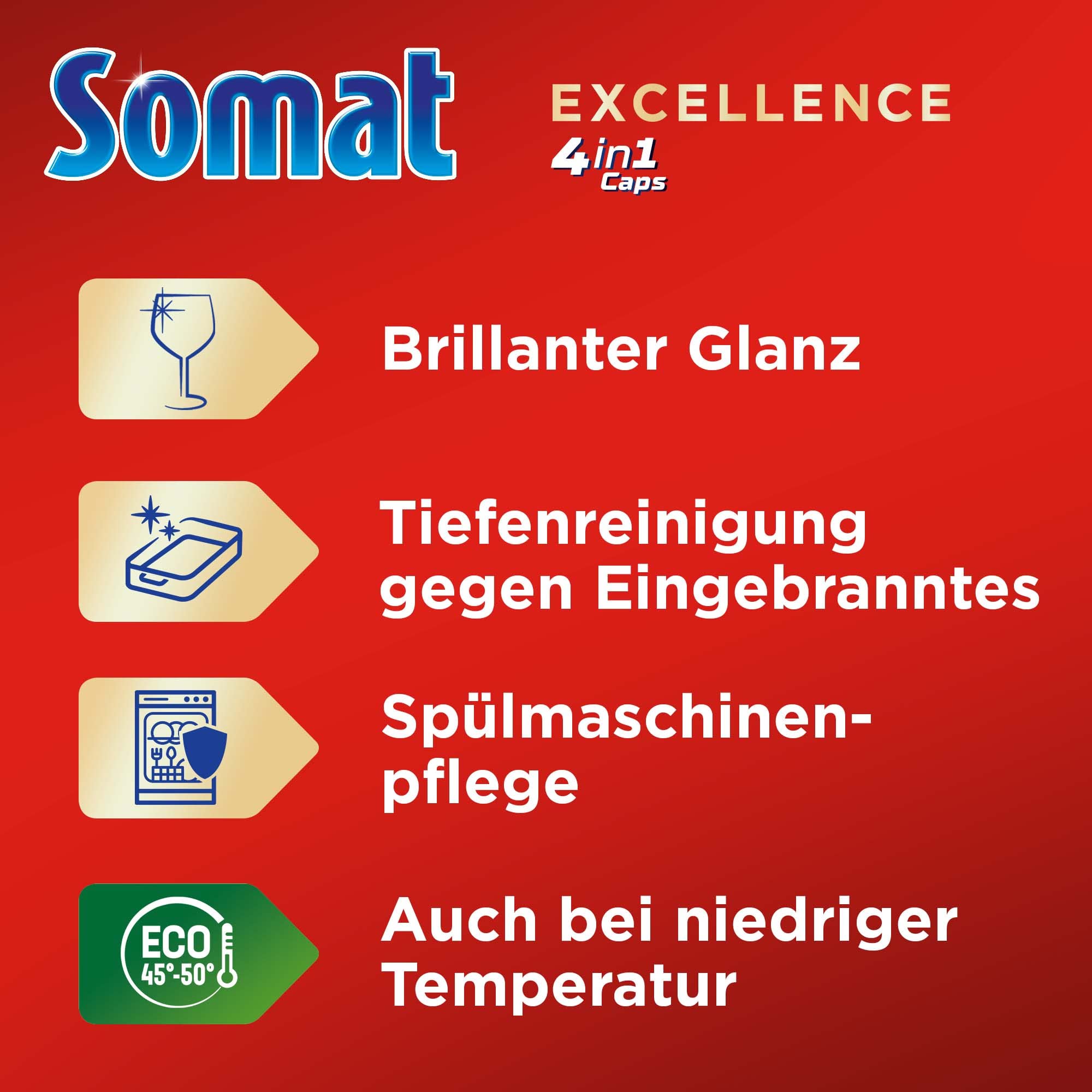 Somat Excellence 4in1 Caps (176 Stück), schnellauflösende Spülmaschinentabs, für exzellente Reinigung & Glanz sogar im Eco-Programm & bei niedrigen Temperaturen