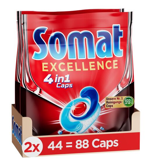 Somat Excellence 4in1 Caps (88 Caps), schnellauflösende Spülmaschinentabs, Somat Caps für exzellente Reinigung & Glanz sogar im Eco-Programm & bei niedrigen Temperaturen