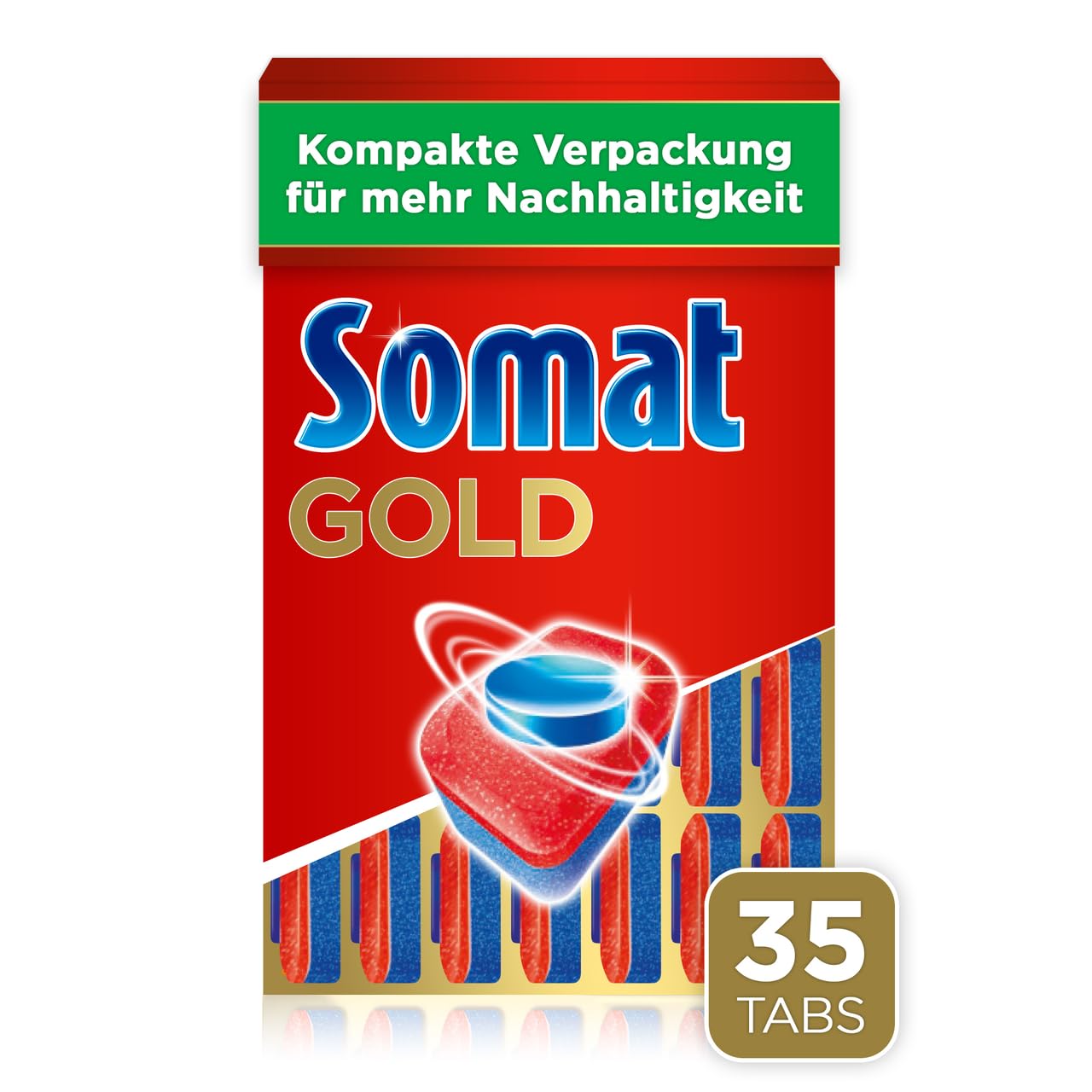Somat Gold Spülmaschinen Tabs (105 Tabs), Geschirrspültabs für strahlend sauberes Geschirr auch bei niedrigen Temperaturen, Extra-Kraft gegen Eingebranntes, kompakte Verpackung für mehr Nachhaltigkeit
