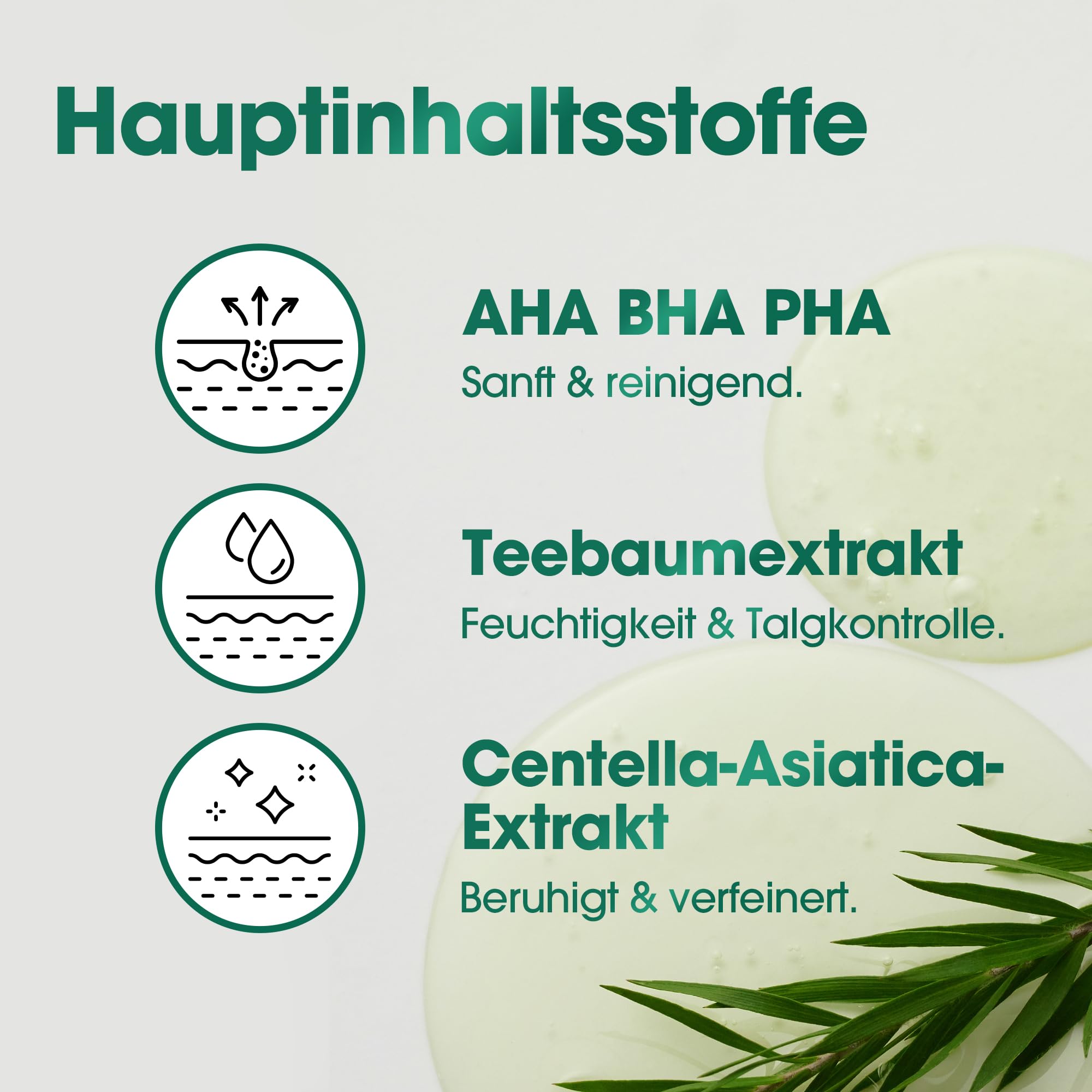 Teebaumöl und Salicylsäure für die Beseitigung von Unreinheiten und Talg.
