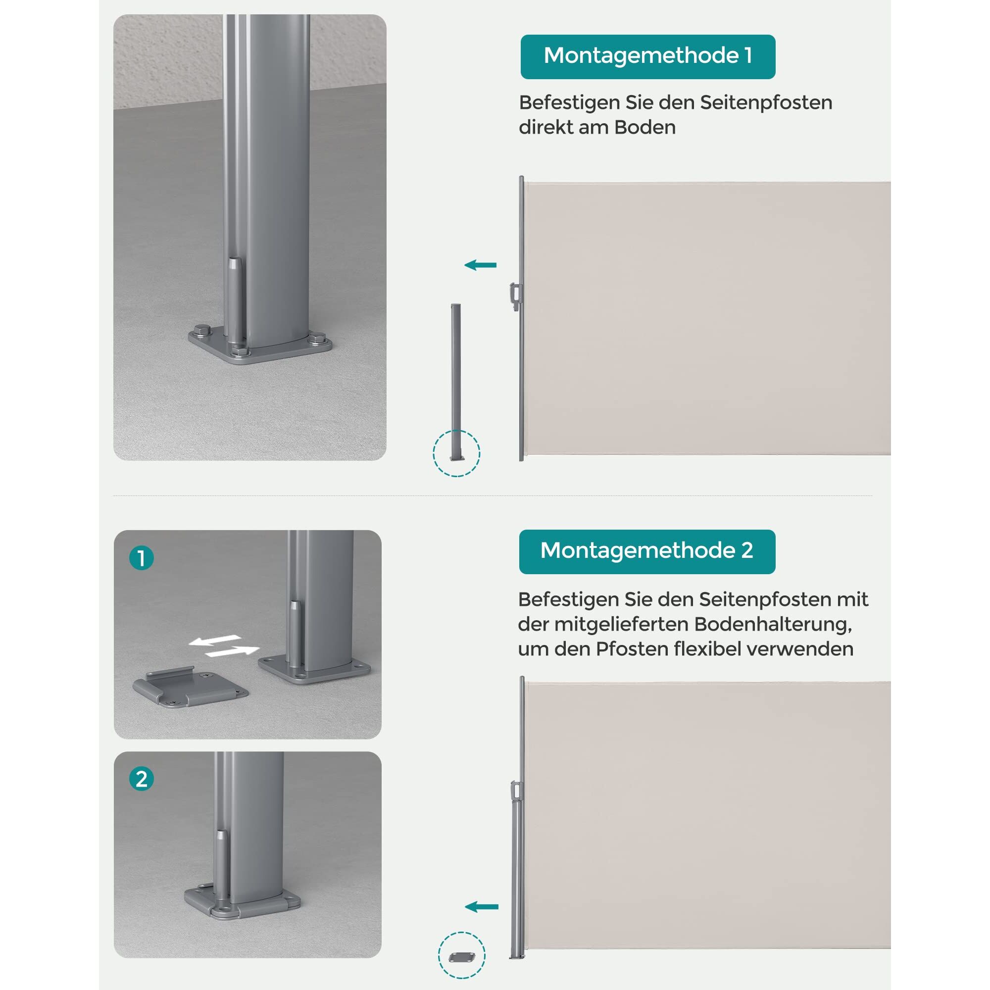SONGMICS Alu-Seitenmarkise, ausziehbar, 200 x 300 cm, Sichtschutz, Sonnenschutz, blickdicht, Seitenrollo, für Balkon, Terrasse, Garten, beige GSA200E
