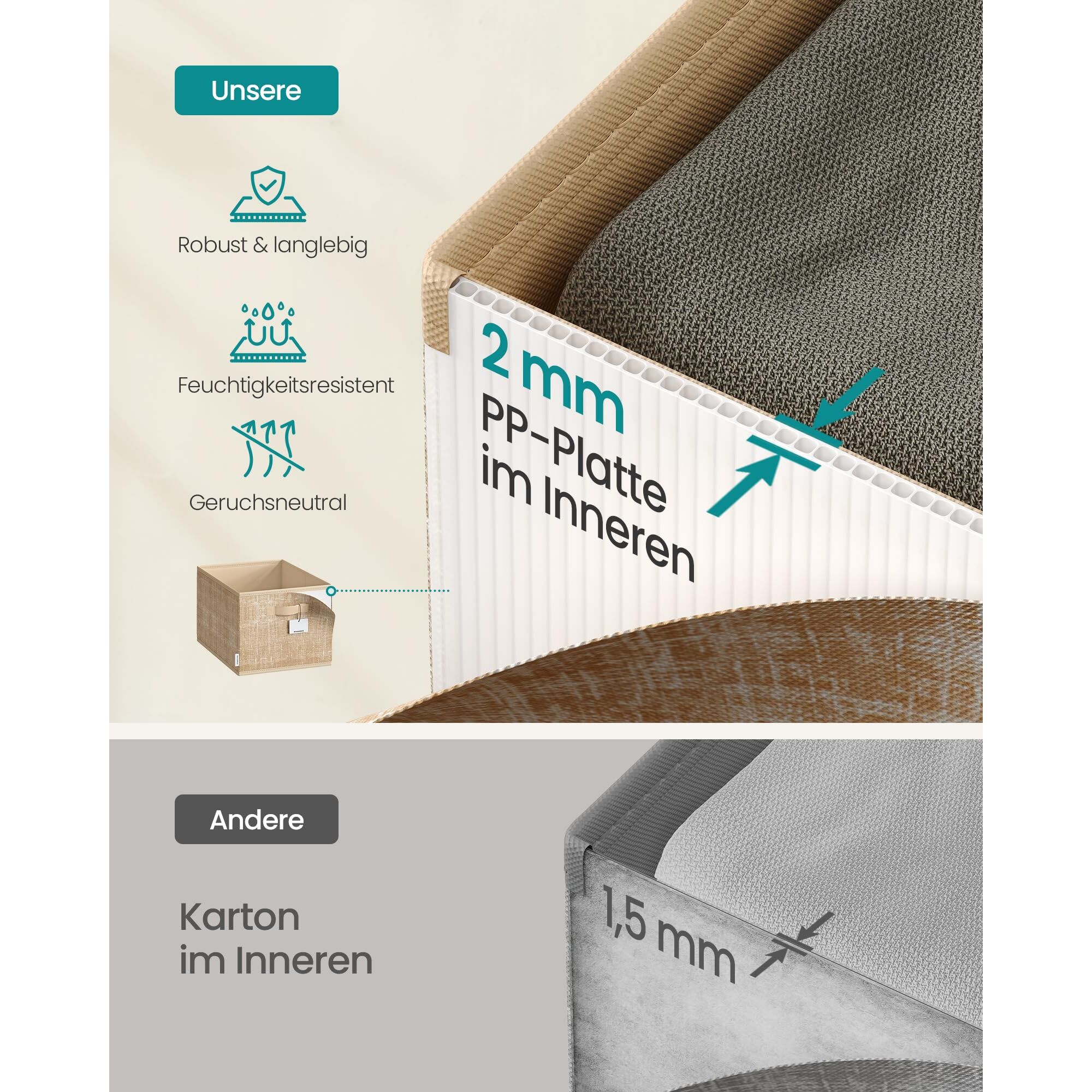 Die SONGMICS Aufbewahrungsboxen aus strapazierfähigem Vliesstoff und geruchsneutralen PP-Kunststoffplatten halten häufigem Gebrauch stand. Sie bieten einen sauberen, geruchsfreien Stauraum. Sie sind ideal für alle, die eine zuverlässige und frische Aufbewahrungslösung suchen.