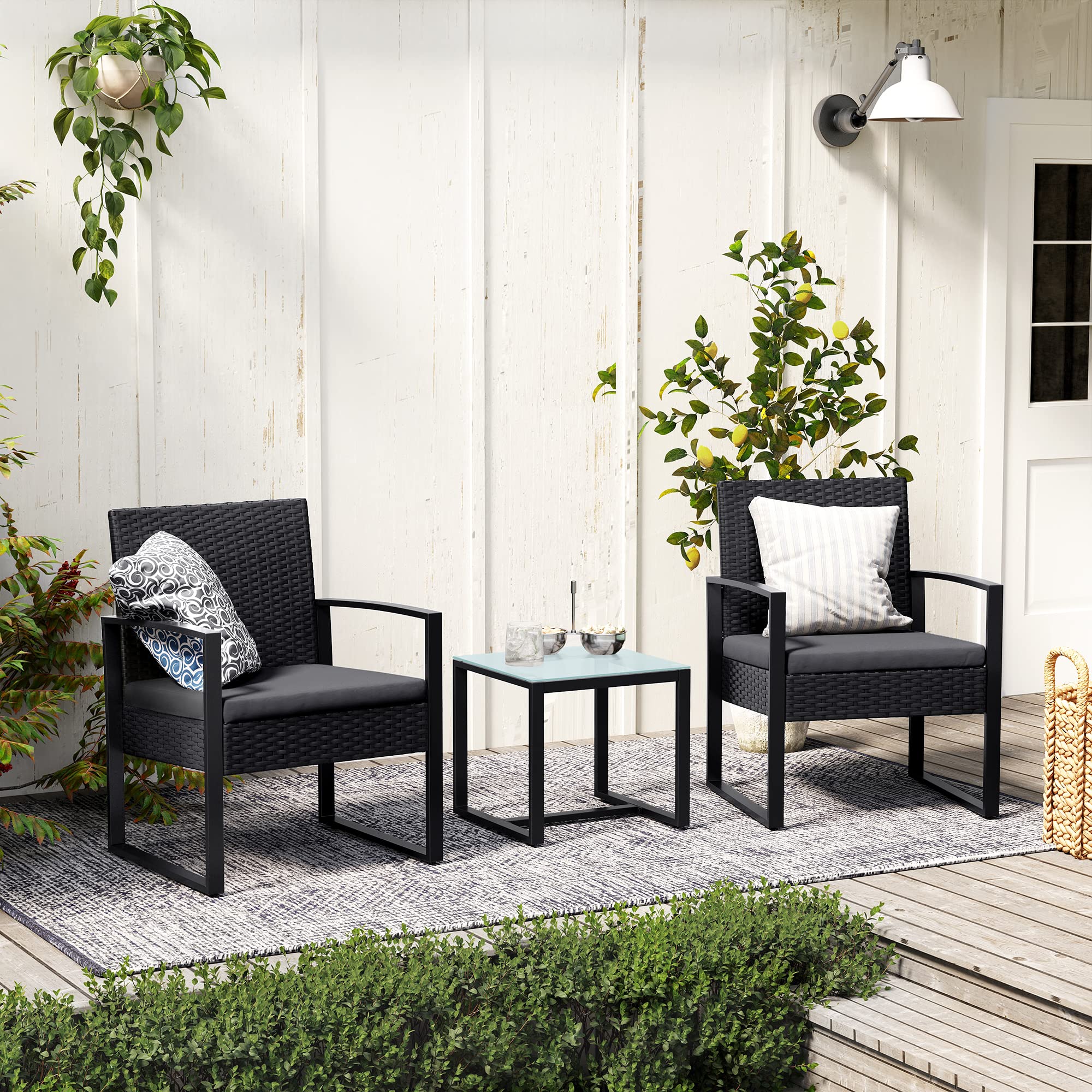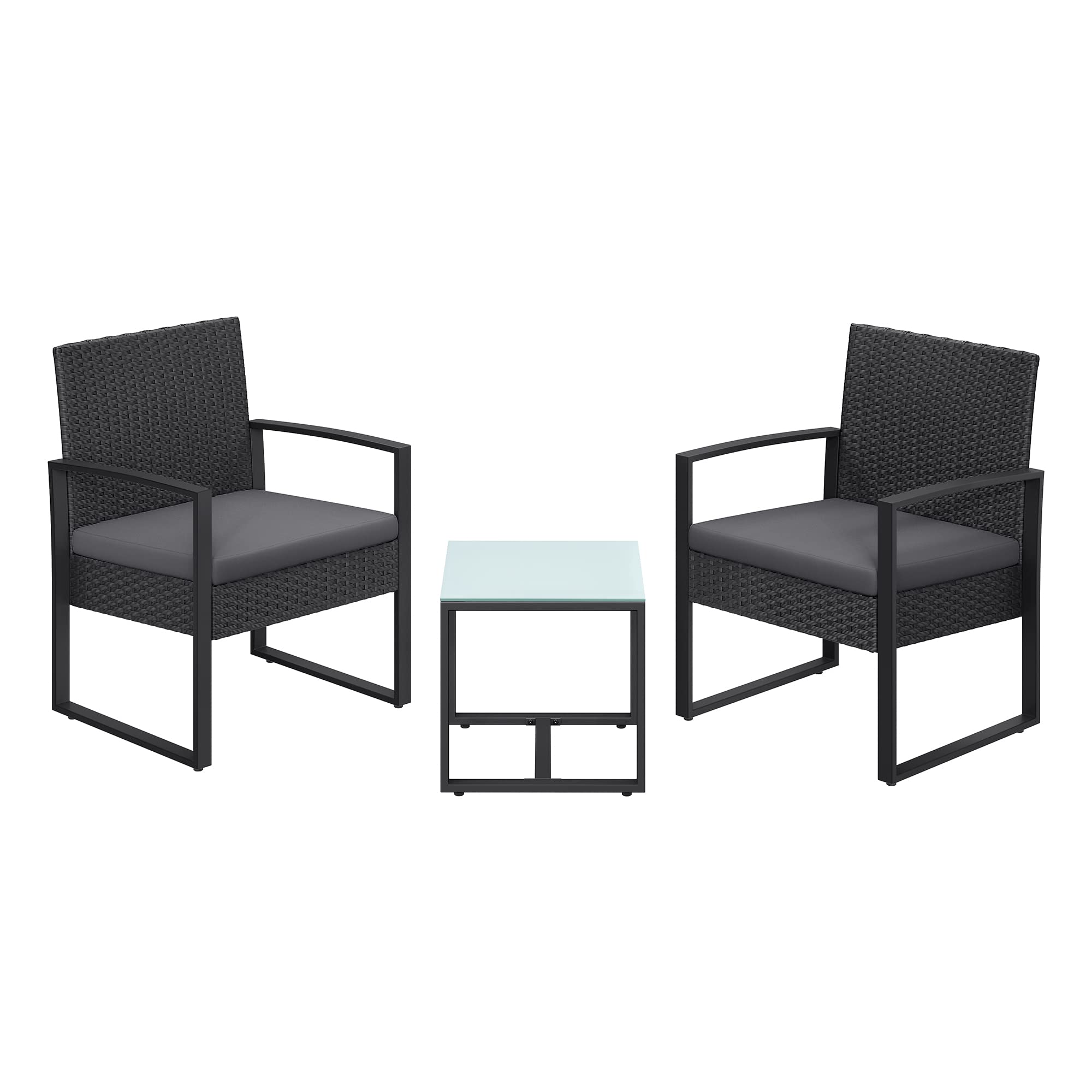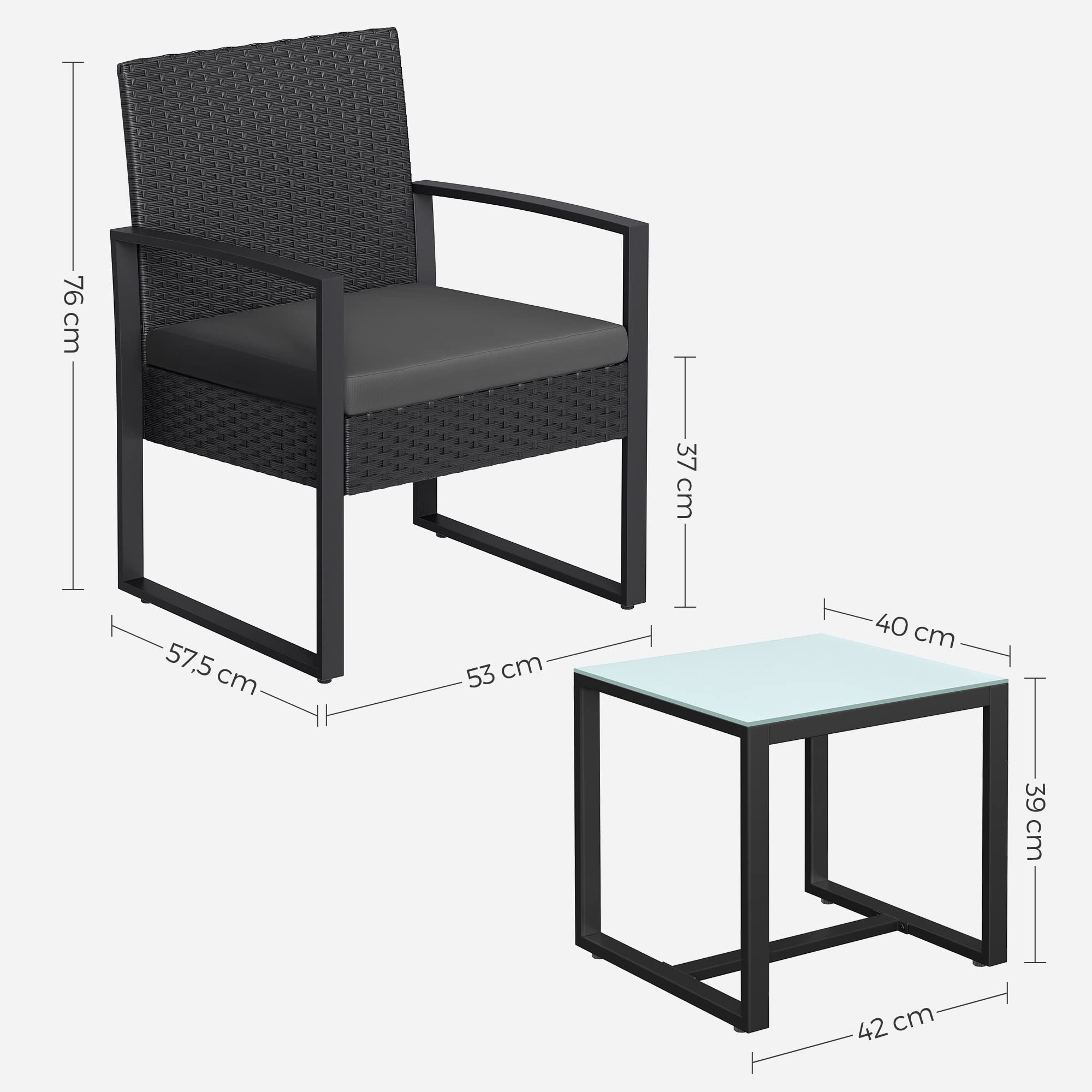 SONGMICS Balkonmöbel, Gartenmöbel-Set, aus PE-Polyrattan, Lounge-Set, Tisch und 2 Stühle, Terrassenmöbel, einfache Montage, Outdoor, für Terrasse, Balkon, Garten, schwarz-grau GGF010G05