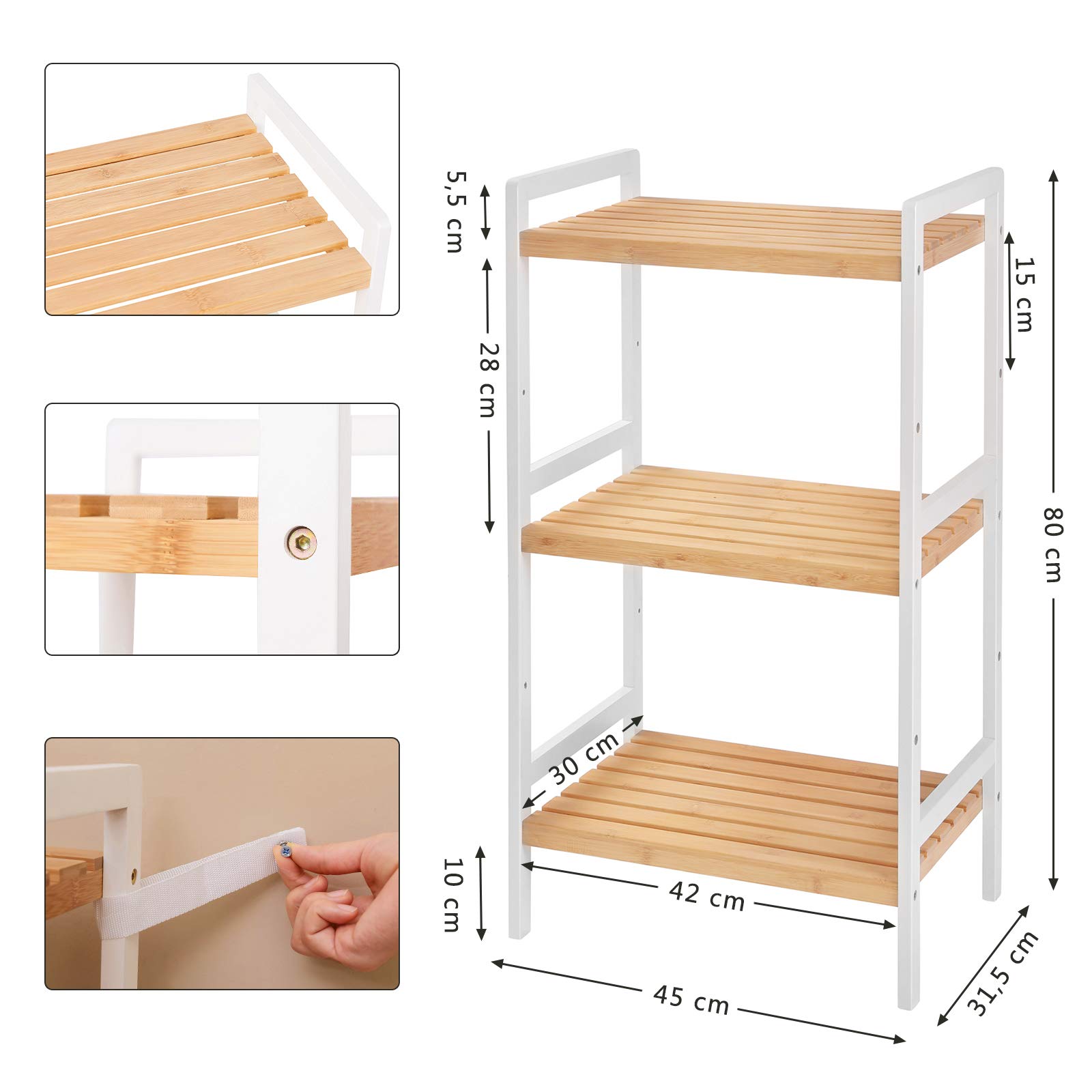 SONGMICS Bambus Regal, Küchenregal, Badregal, Bücherregal, Standregal mit 3 Ablagen, 31,5 x 45 x 80 cm, für Bad, Küche, Wohnzimmer, Schlafzimmer, Balkon, naturfarben-weiss BCB73Y