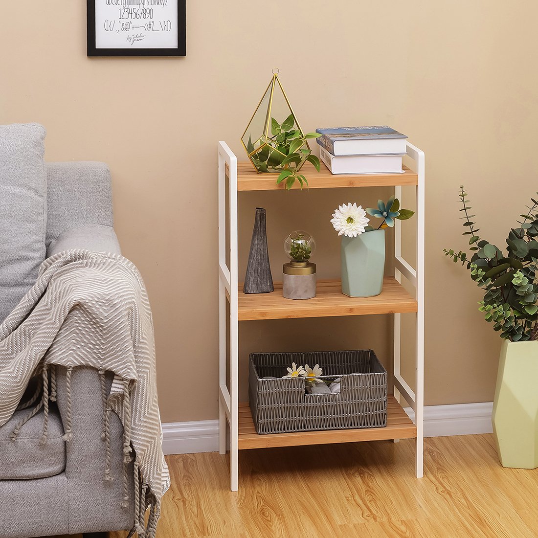 Aus natürlichem Bambus gefertigt, bringt dieses moderne Regal einen Hauch von Frische in Ihr Zuhause. Mit 3 verstellbaren Regalebenen ausgestattet, bietet es Ihnen zudem einen flexiblen Aufbewahrungsort, während es dank der schmalen Form viel Platz spart. Holen Sie sich dieses Allzweckregal und befreien Sie Ihr Zuhause vom Chaos!