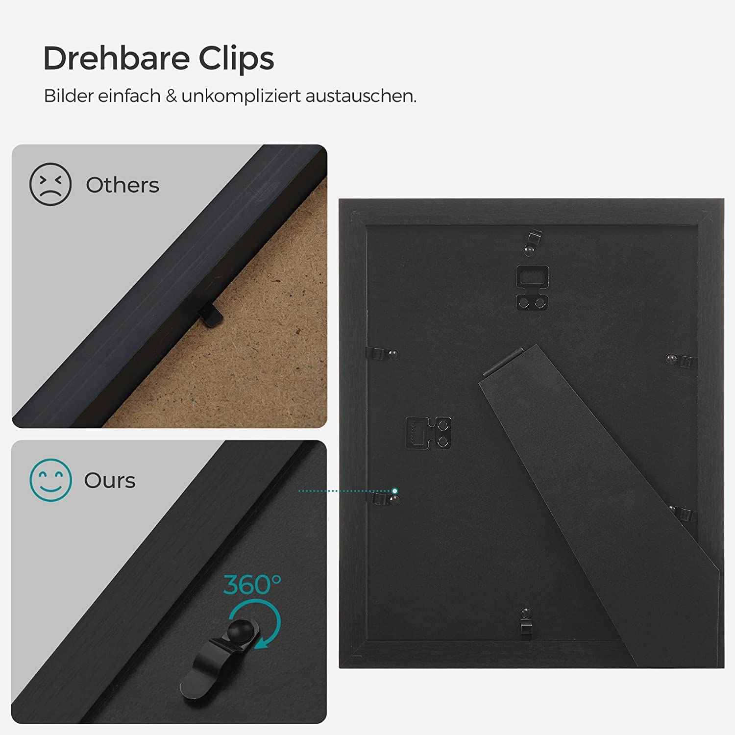 SONGMICS Bilderrahmen 10er Set, für 2 Fotos in 20 x 25 cm, 4 Fotos in 13 x 18 cm, 4 Fotos in 10 x 15 cm, Kunststoffscheibe, MDF, tintenschwarz RPF310H