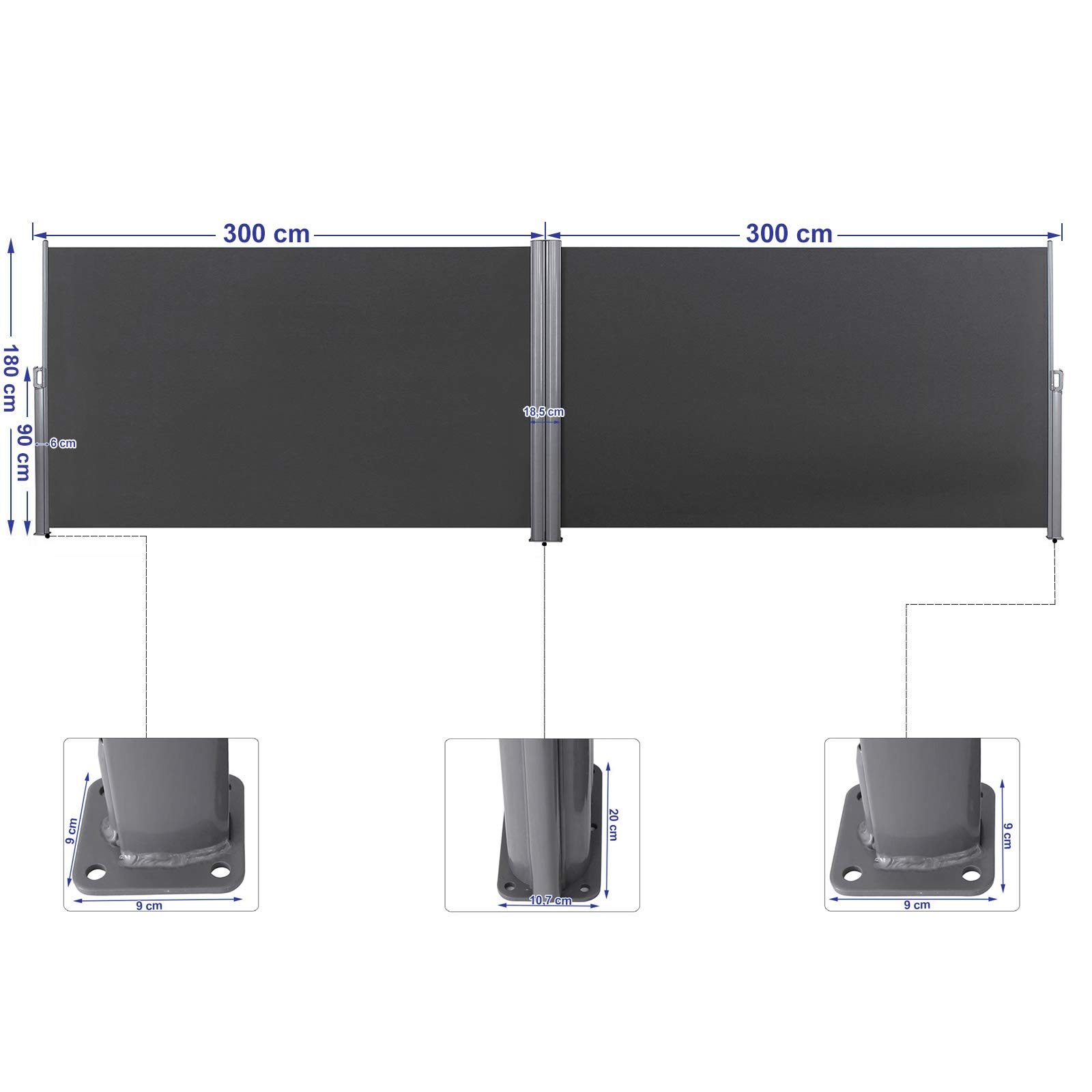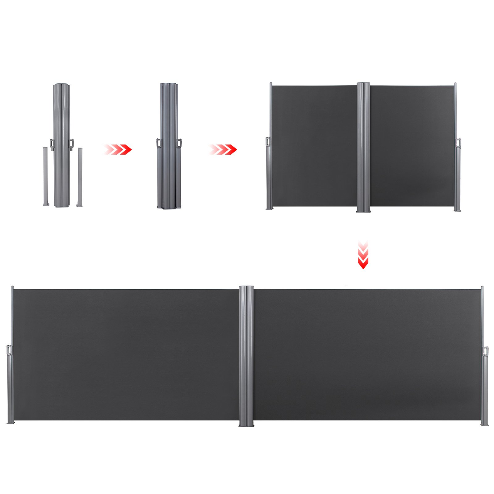SONGMICS Doppelseitenmarkise, 1,8 x 6 m (H x L), ausziehbare Seitenmarkise, Sichtschutz, Sonnenschutz, Seitenrollo, für Balkon, Terrasse und Garten, anthrazit GSA360G