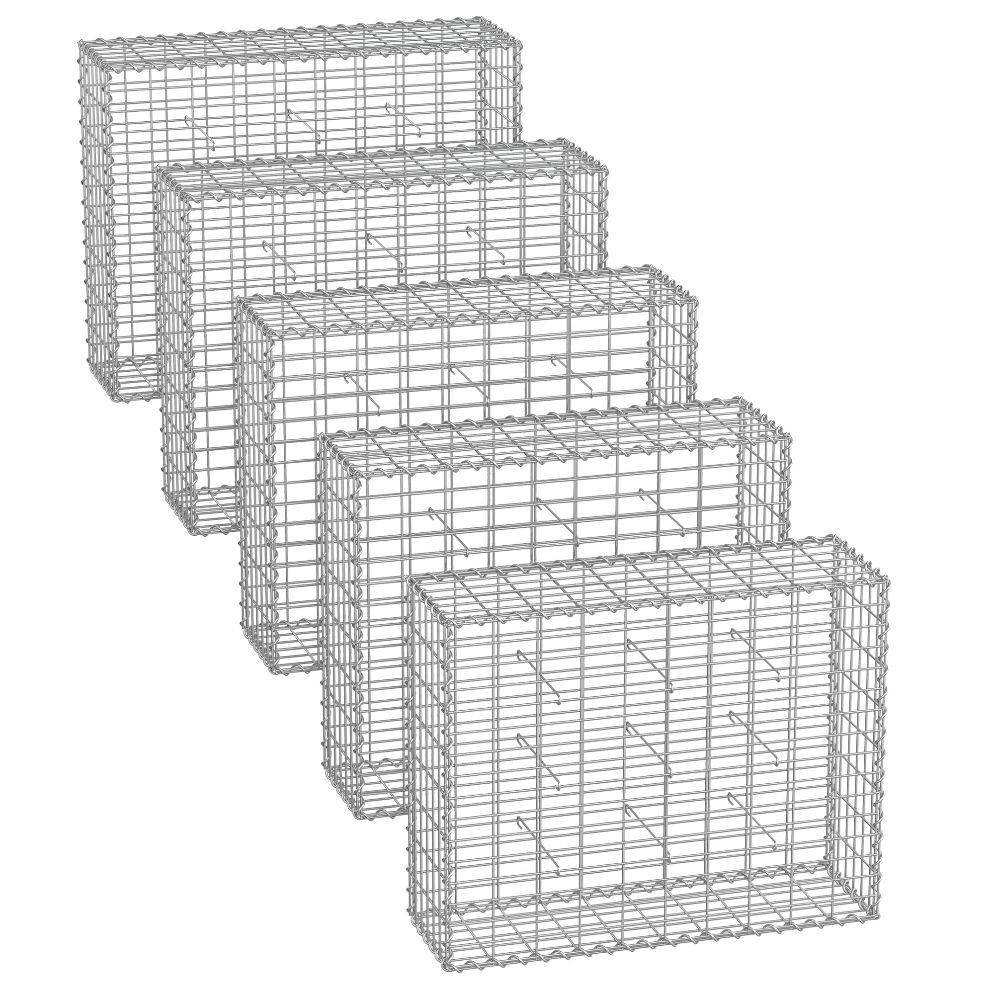 - [Stabiler Stahl mit 4mm Durchmesser] Dieses Gabionenkorb 5er-Set aus verzinktem Stahl mit einem Durchmesser von 4mm ist robust, widerstandsfähig, rost- und korrosionsbeständig und schmückt Ihren Garten Saison für Saison