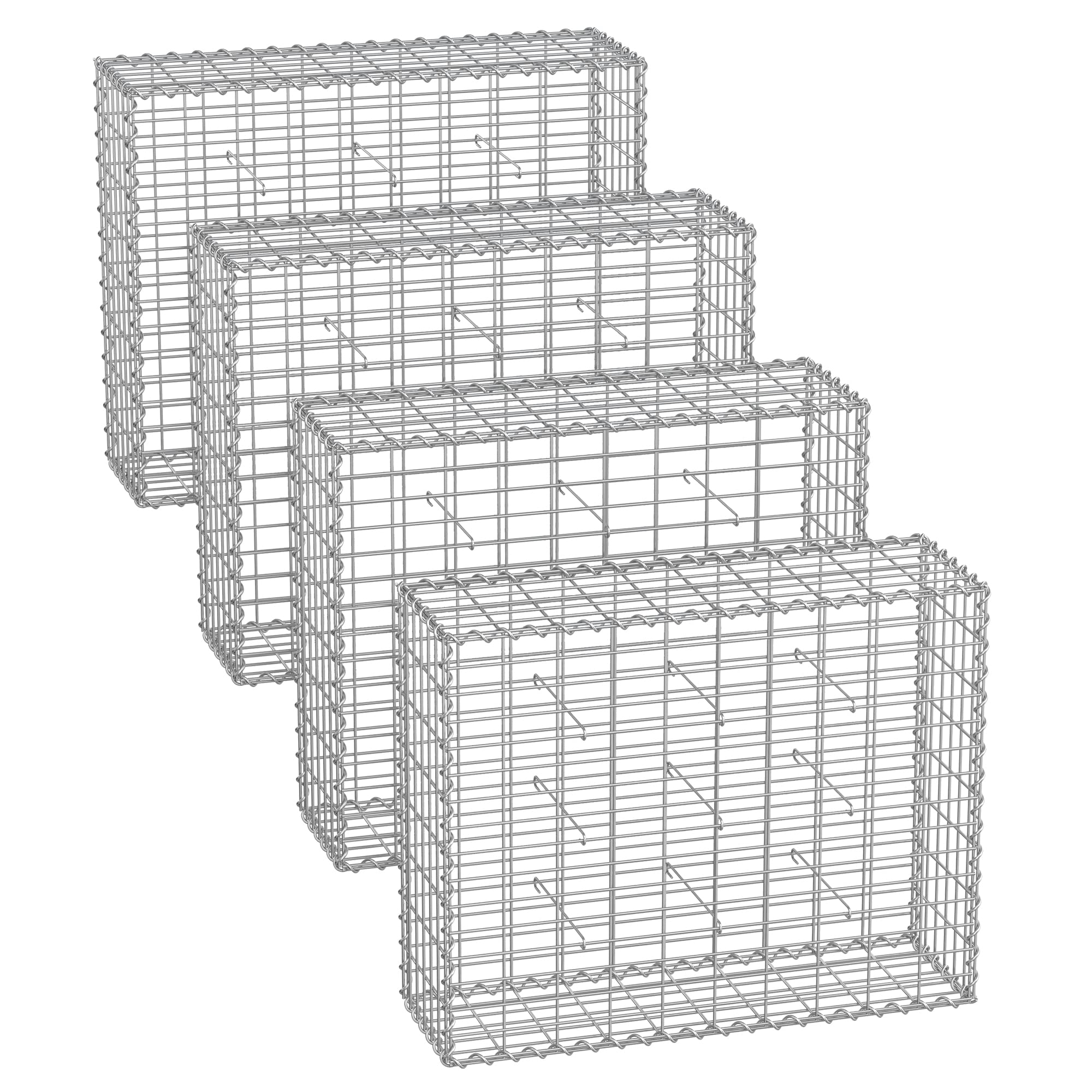 SONGMICS Gabionenkörbe, Metall-Steinkörbe mit 5 x 10 cm Maschenweite für Mauersteine, verzinkt, Steingabionen Mauer, 100 x 80 x 30 cm, 4er Set, silber GGB483V1