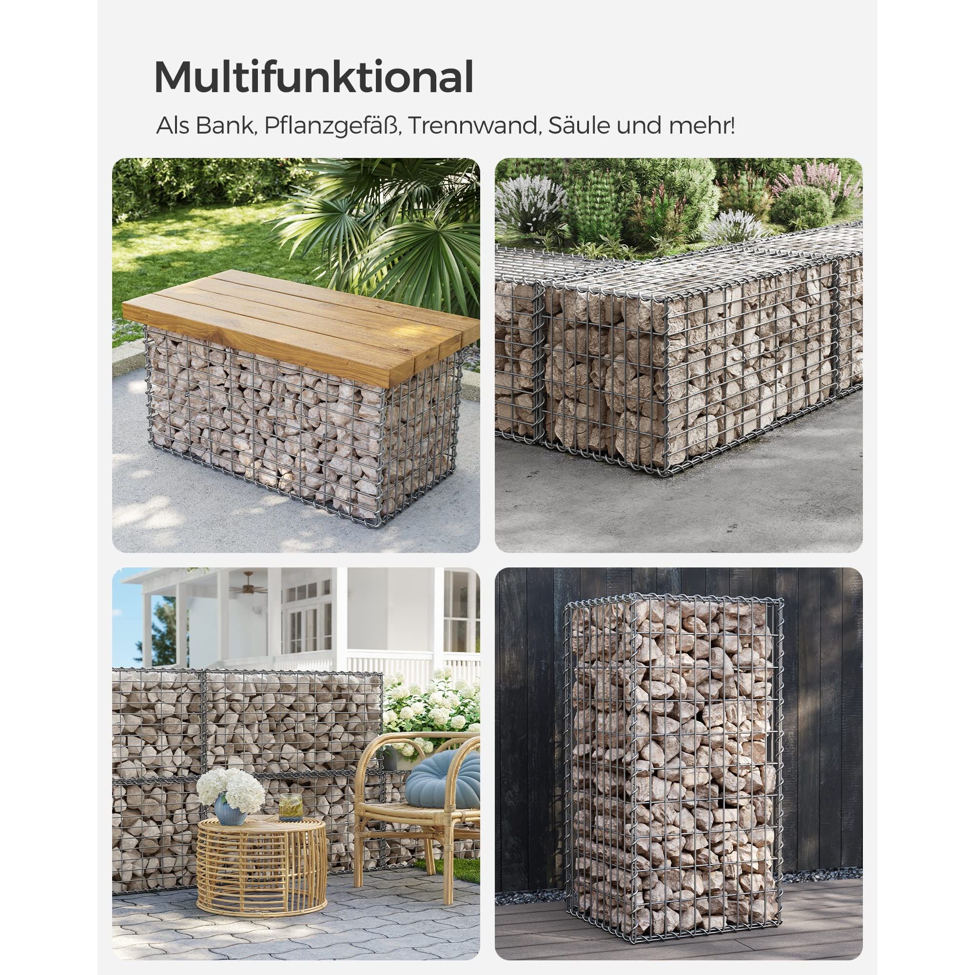 - [Anpassbar und multifunktional] Je nach Bedarf oder Raumaufteilung können Sie diese Steingabionen allein verwenden oder mehrere von ihnen miteinander kombinieren, um sie als Pflanzgefässe, Bänke, Trennwände oder Säulen in Ihrem Garten zu verwenden