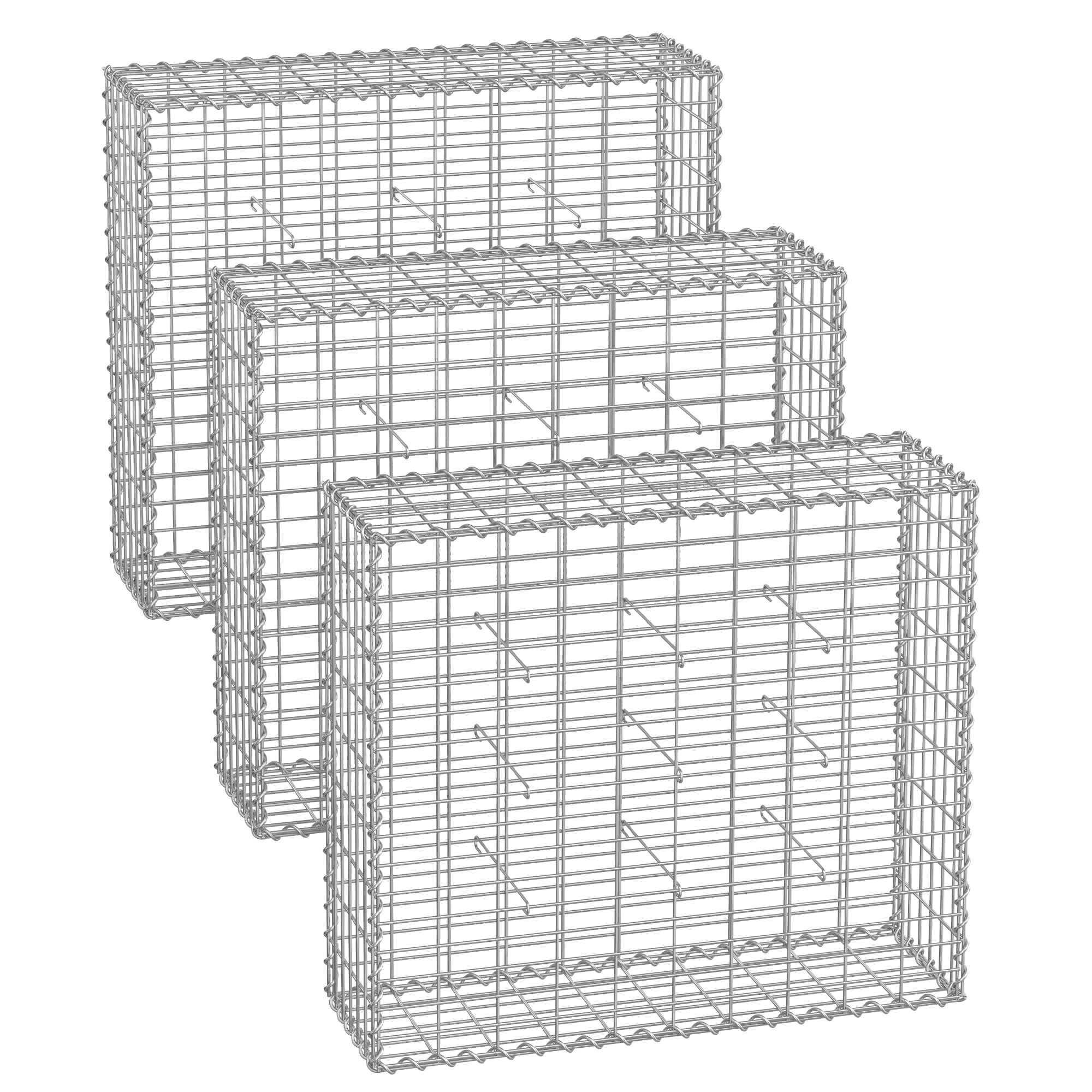 SONGMICS Gabionenkörbe, Metall-Steinkörbe mit 5 x 10 cm Maschenweite für Mauersteine, verzinkt, Steingabionen Mauer, 100 x 90 x 30 cm, 3er Set, silber GGB393V1