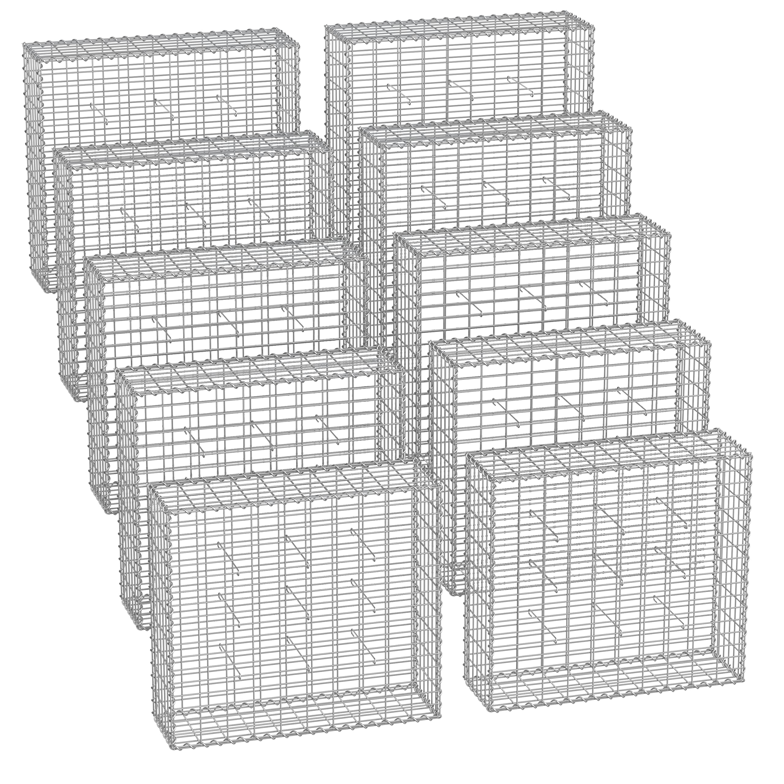 SONGMICS Gabionenkörbe, Metall-Steinkörbe mit 5 x 10 cm Maschenweite für Mauersteine, verzinkt, Steingabionen Mauer, 100 x 90 x 30 cm, 10er Set, silber GGB093V1