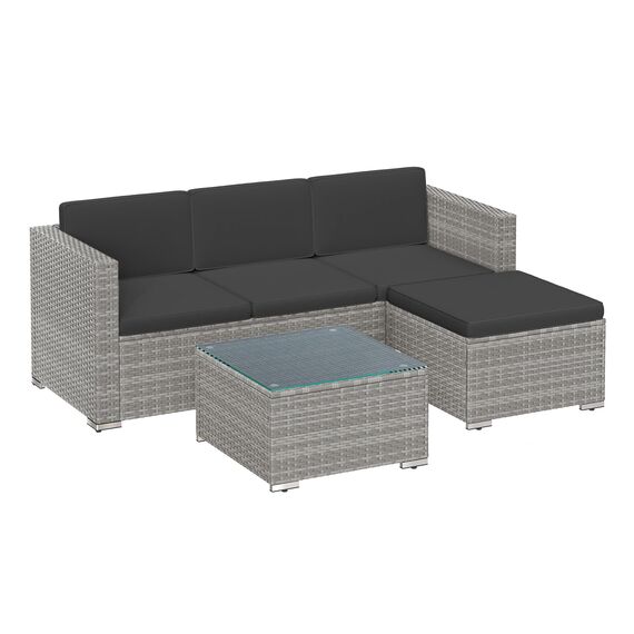 - [Flexibles Design] Das 3-Sitzer Sofa, der Hocker und der Couchtisch – Stellen Sie sie zusammen oder getrennt auf und verwenden Sie sie je nach Bedarf. Gestalten Sie Ihr Zuhause mit diesem Gartenmöbelset ganz individuell!
