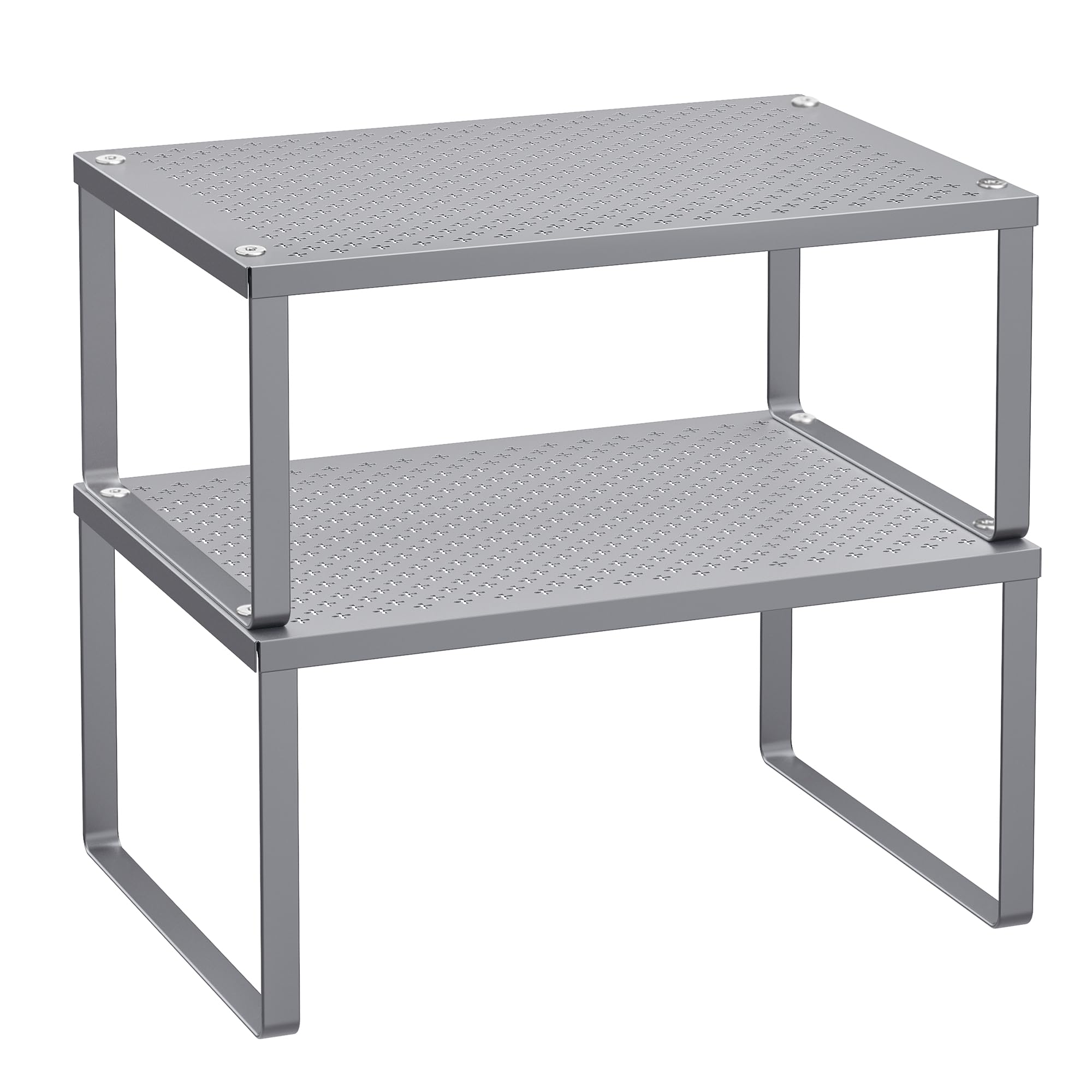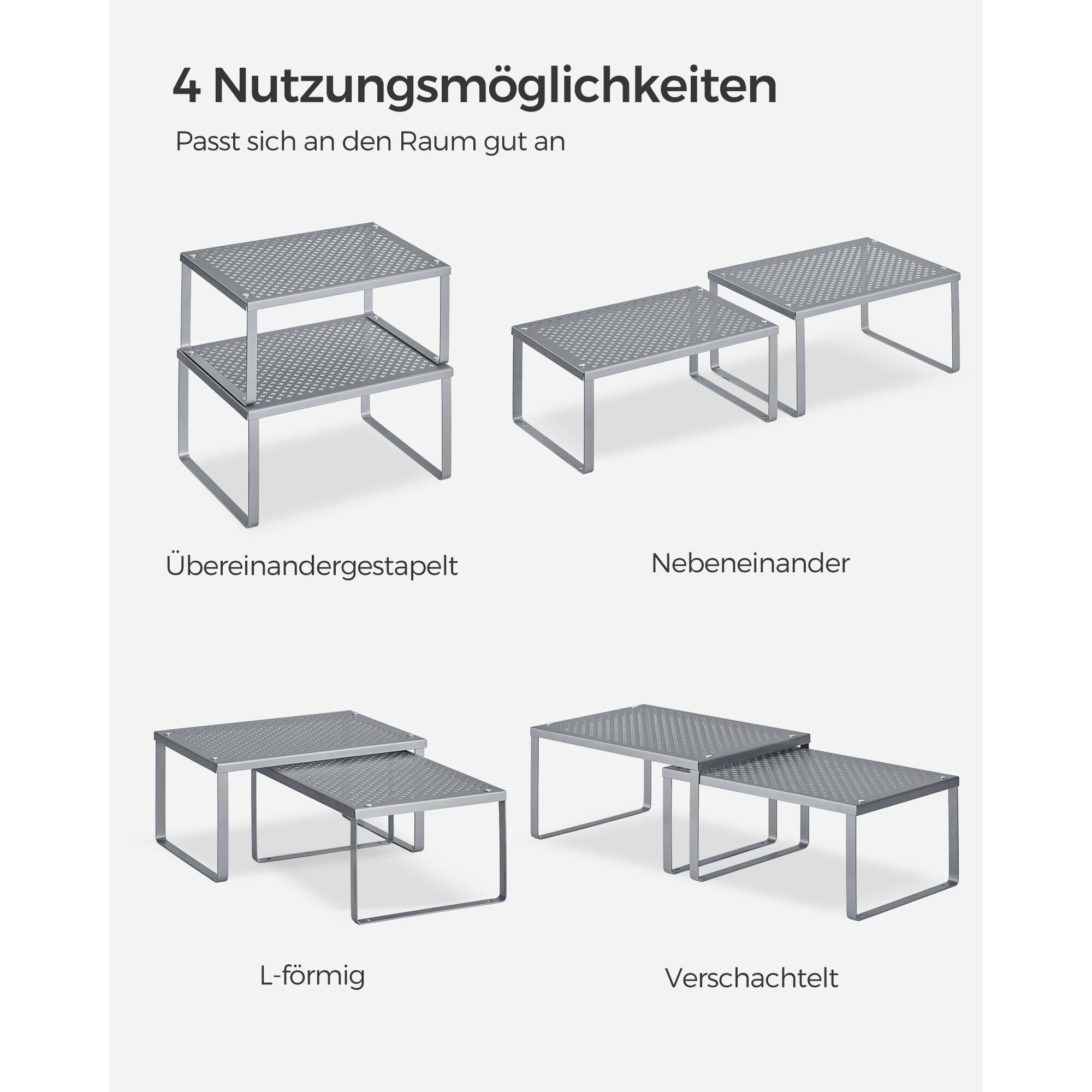 SONGMICS Gewürzregal, 2er Set, Küchenregal, Küchen-Organizer, Küche, Gewürzhalter, erweiterbar, stapelbar, kleines Regal, Metall, silbern KCS01SV