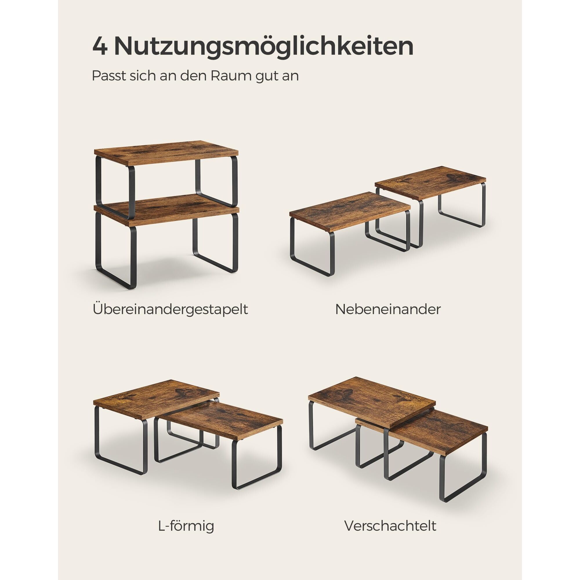 SONGMICS Gewürzregal, 4er Set, Küchenregal, Küchen-Organizer, erweiterbar, Gewürzhalter, stapelbar, mit Metallrahmen, 19,5 x 29,7 x 15,8 cm, tintenschwarz-vintagebraun KCS021X01