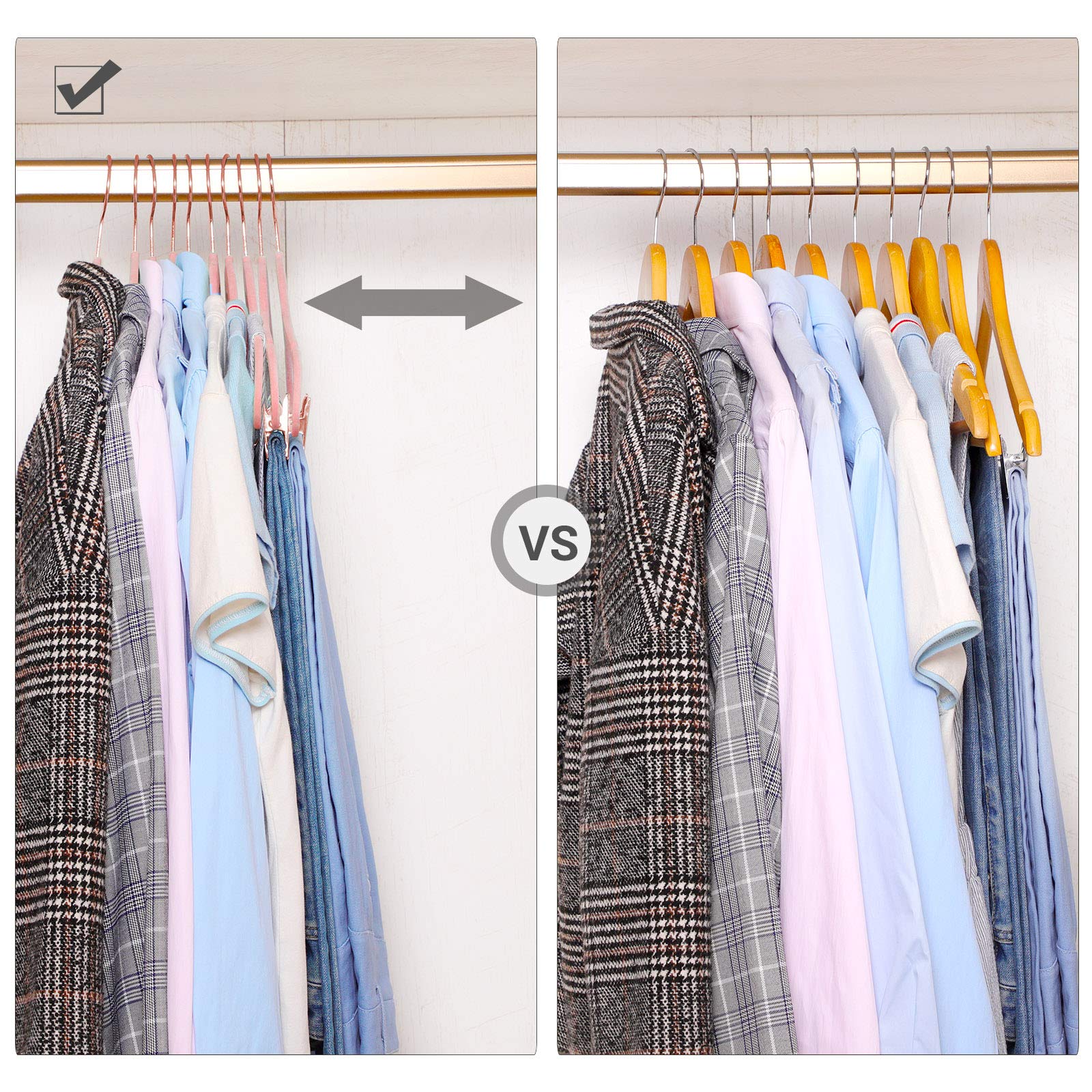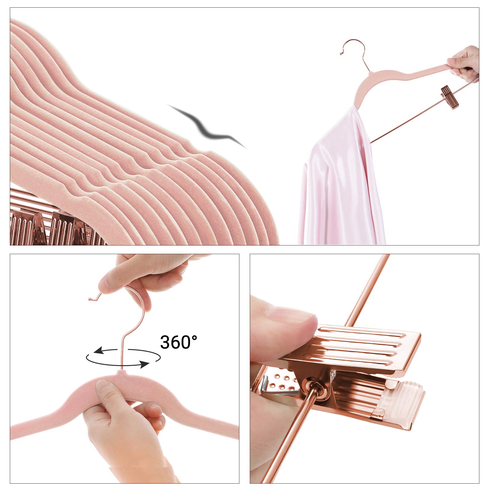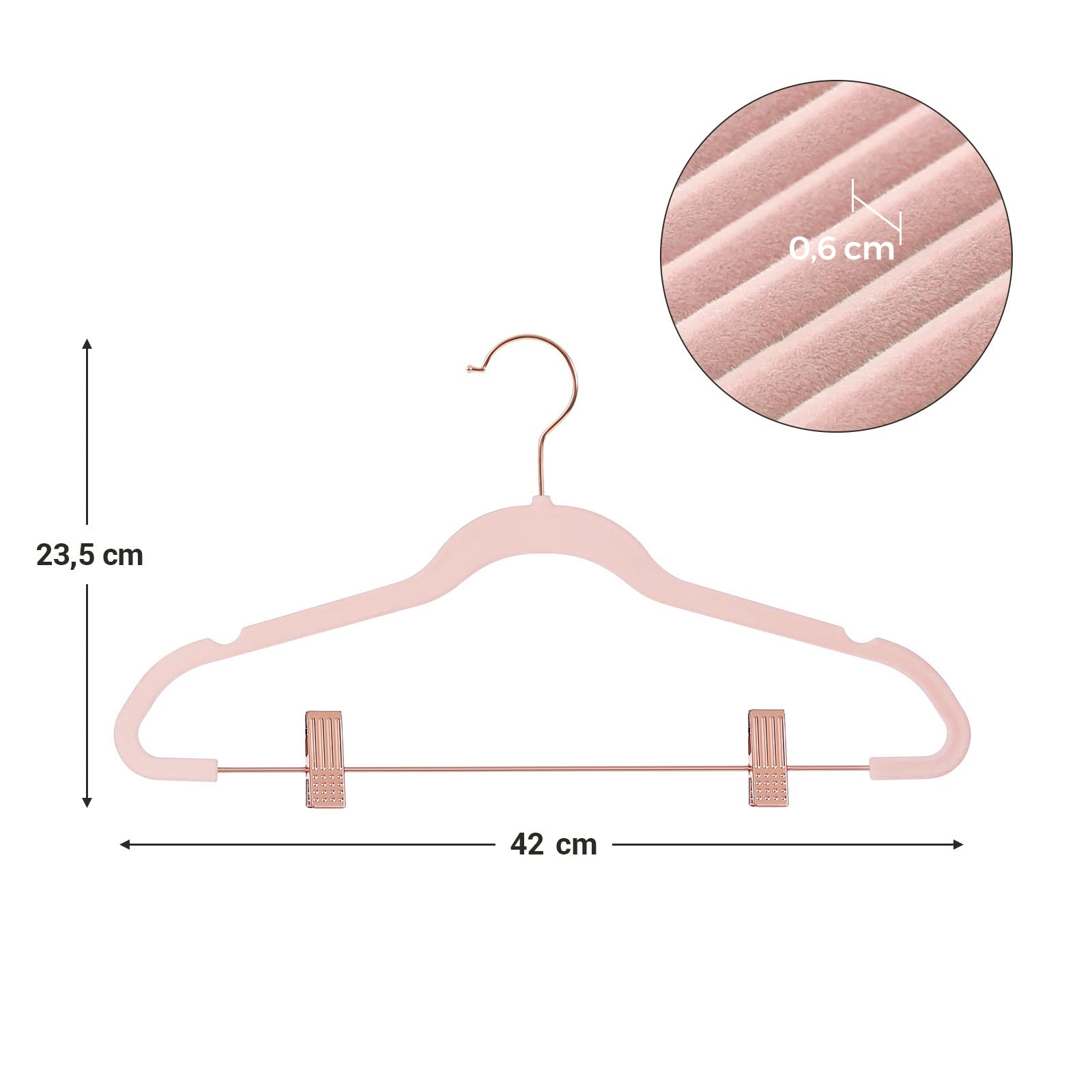 SONGMICS Hosenbügel, 24 Stück, 42 cm, Kleiderbügel mit verstellbaren Zangen und goldfarbenen Haken, rutschfest, platzsparend, für Röcke, Hellrosa CRF14PK24, Standard, Rosa (Hell)