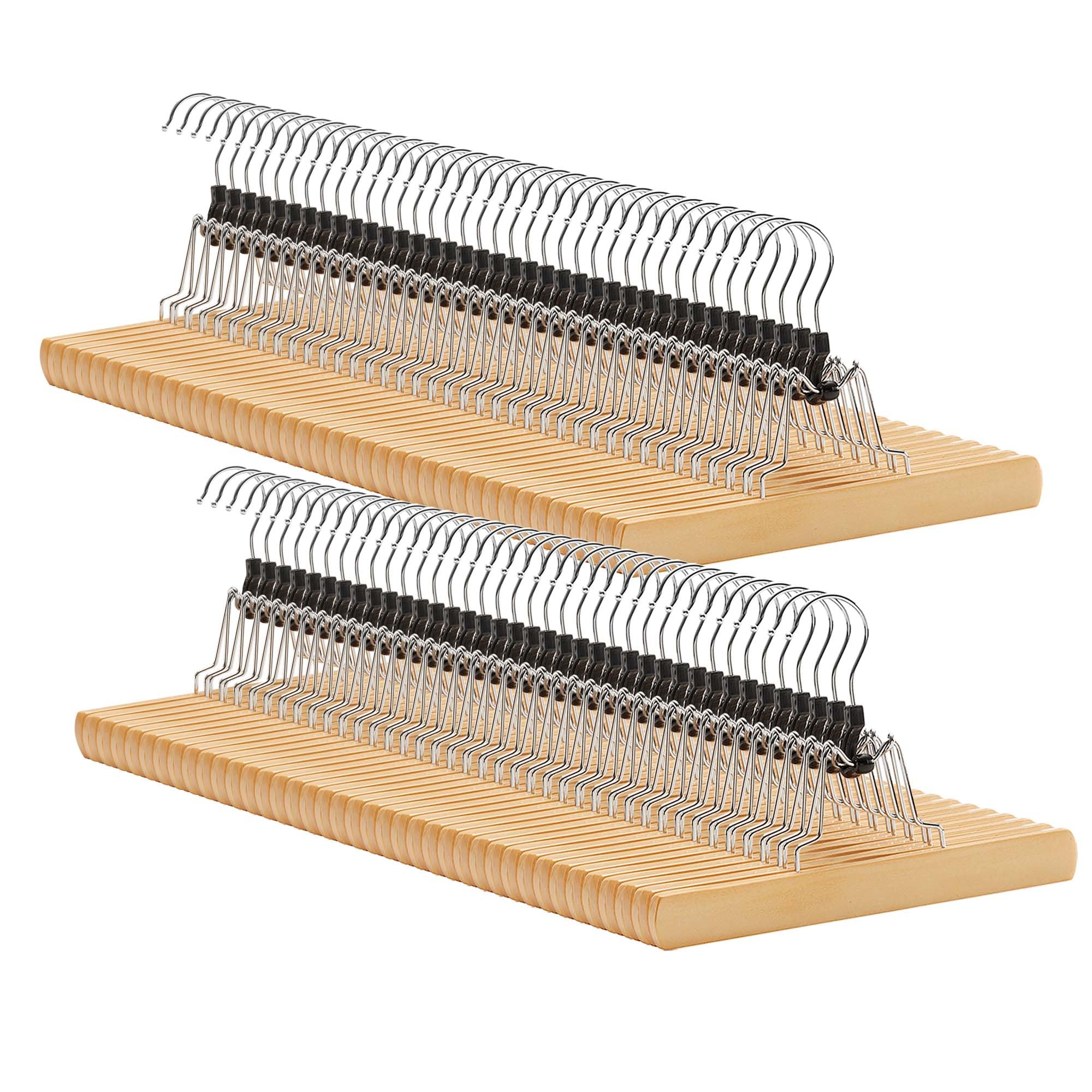 - [Hohe Qualität - für Ihre geliebte Kleidung] Diese Kleiderbügel aus gut geschliffenem und lackiertem Massivholz sind stark genug, um schwere Hosen zu tragen, die glatte Oberfläche beschädigt zudem Ihre empfindlichen Kleidungsstücke nicht