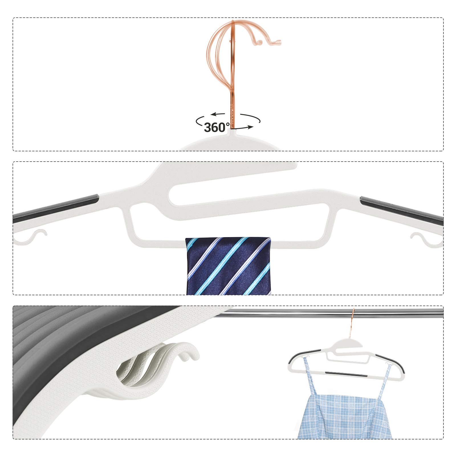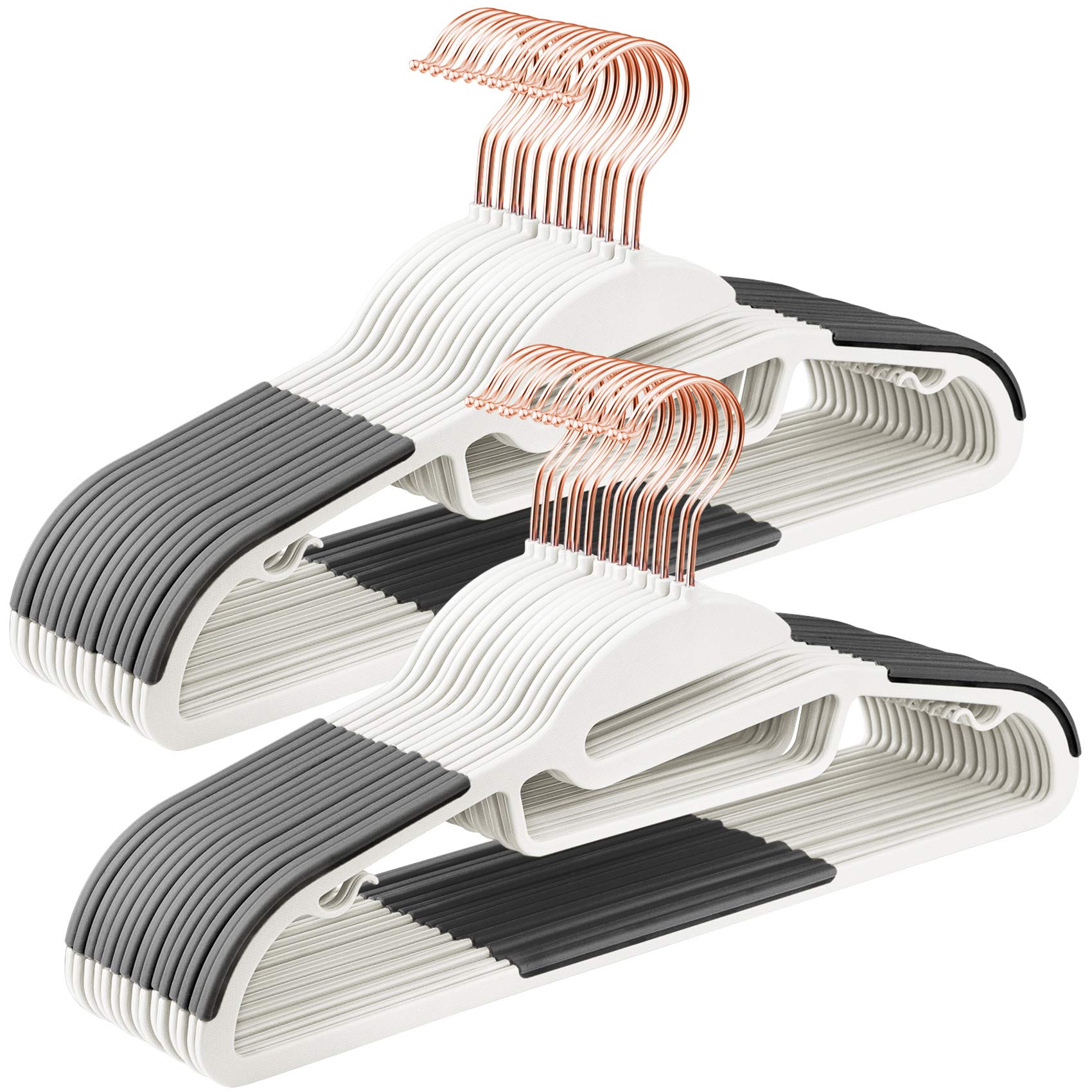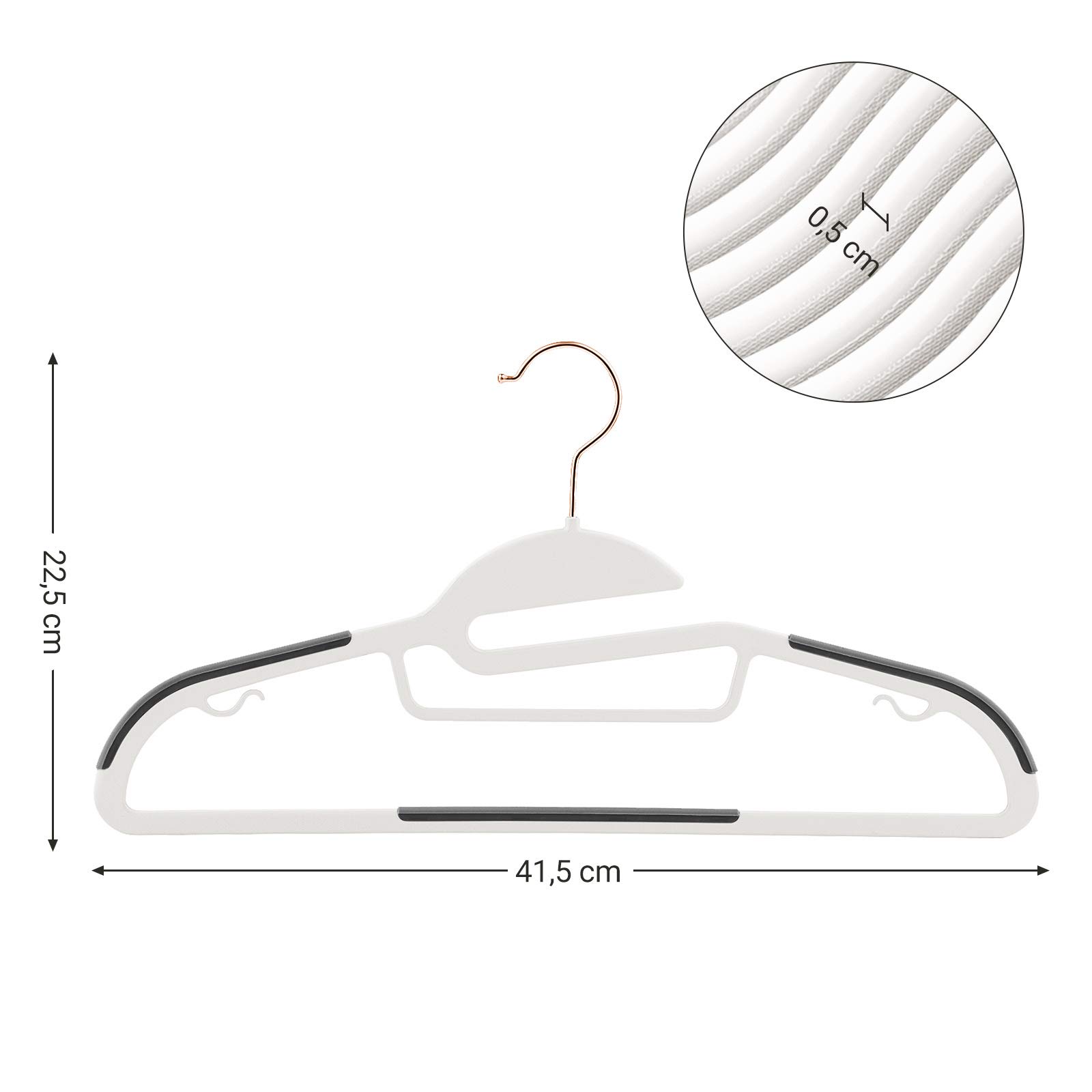 SONGMICS Kleiderbügel 30er Set, Anzugbügel aus Kunststoff, hochwertig, Anti-Rutsch-Design, platzsparend, 0,5 cm dick, Haken in Roségold, um 360° drehbar, 41,5 cm breit, weiss-dunkelgrau CRP043W01