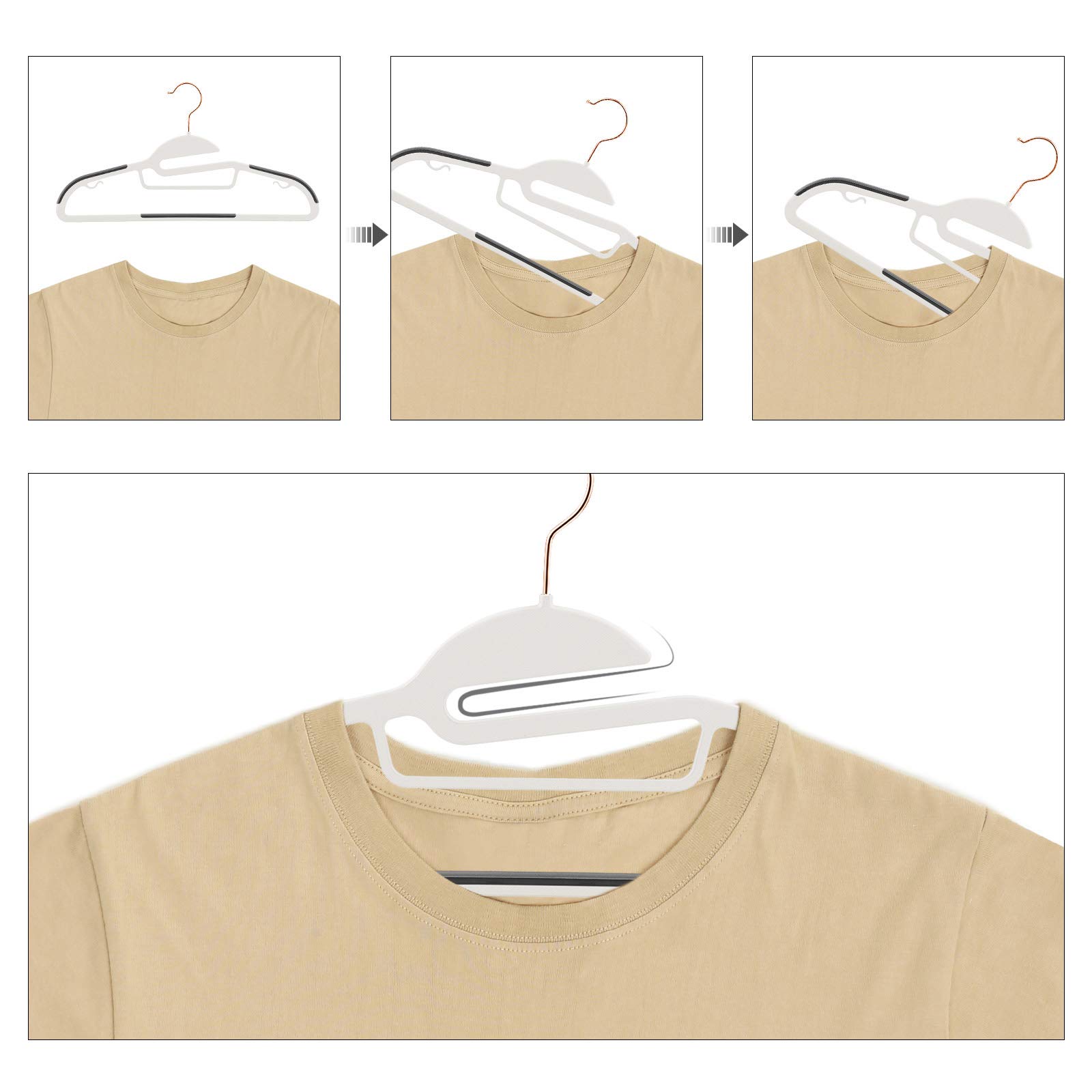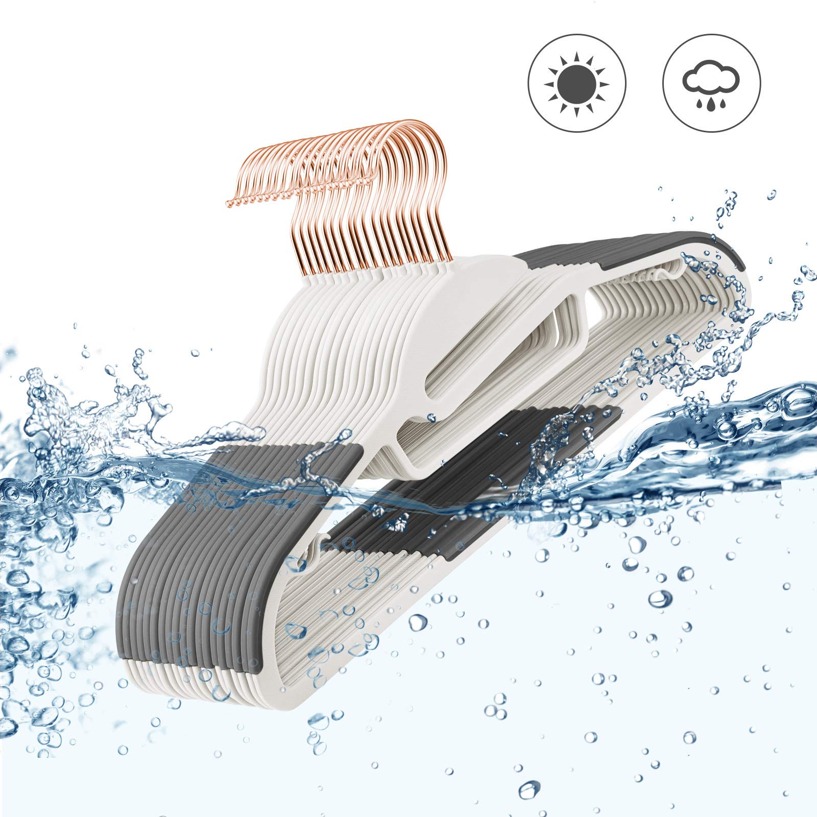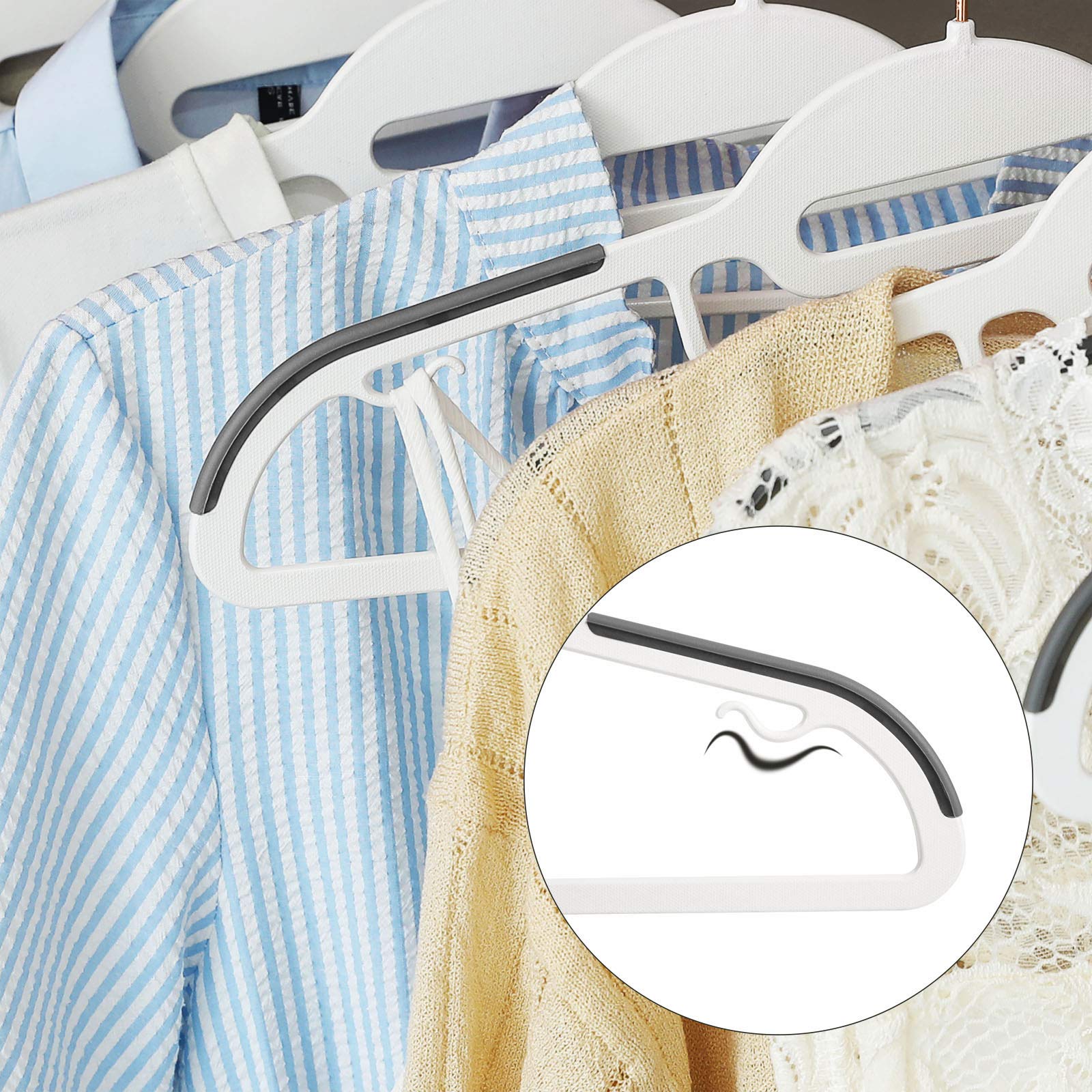 SONGMICS Kleiderbügel 30er Set, Anzugbügel aus Kunststoff, hochwertig, Anti-Rutsch-Design, platzsparend, 0,5 cm dick, Haken in Roségold, um 360° drehbar, 41,5 cm breit, weiss-dunkelgrau CRP043W01