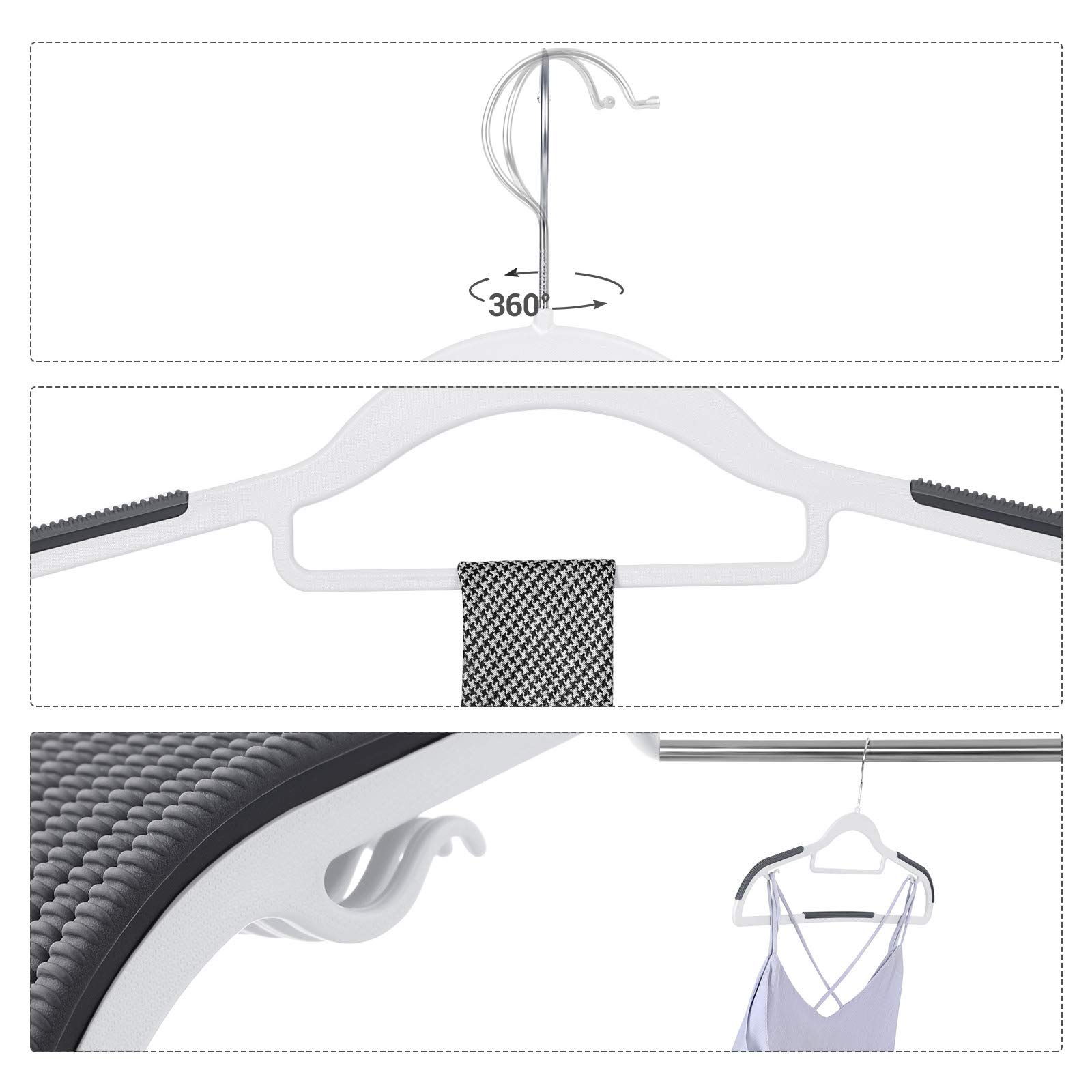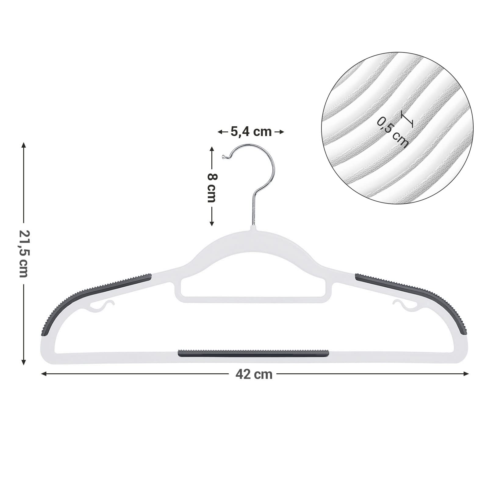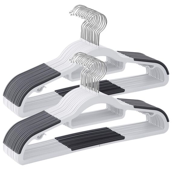 SONGMICS Kleiderbügel 30er Set, Bügel aus Kunststoff, rutschfest, platzsparend, Dicke 0,5 cm, 42 cm lang, um 360° drehbarer Haken in Silber, weiss-dunkelgrau CRP20WG30