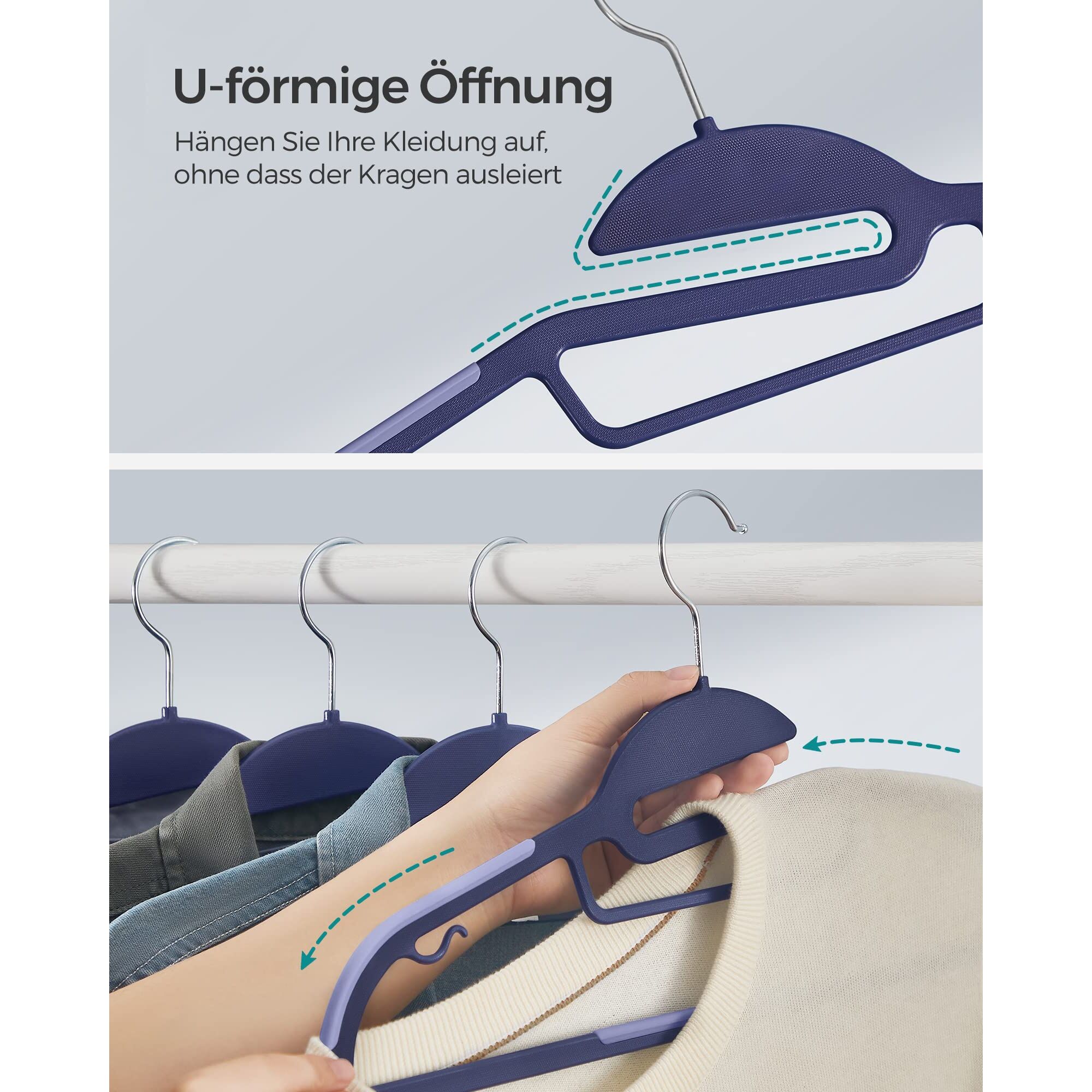 SONGMICS Kleiderbügel Kunststoff, 20er Set, Bügel mit U-förmiger Öffnung, platzsparend, 0,5 cm dick, 41,5 cm breit, um 360° drehbarer Haken, dunkelblau-hellblau CRP041C02