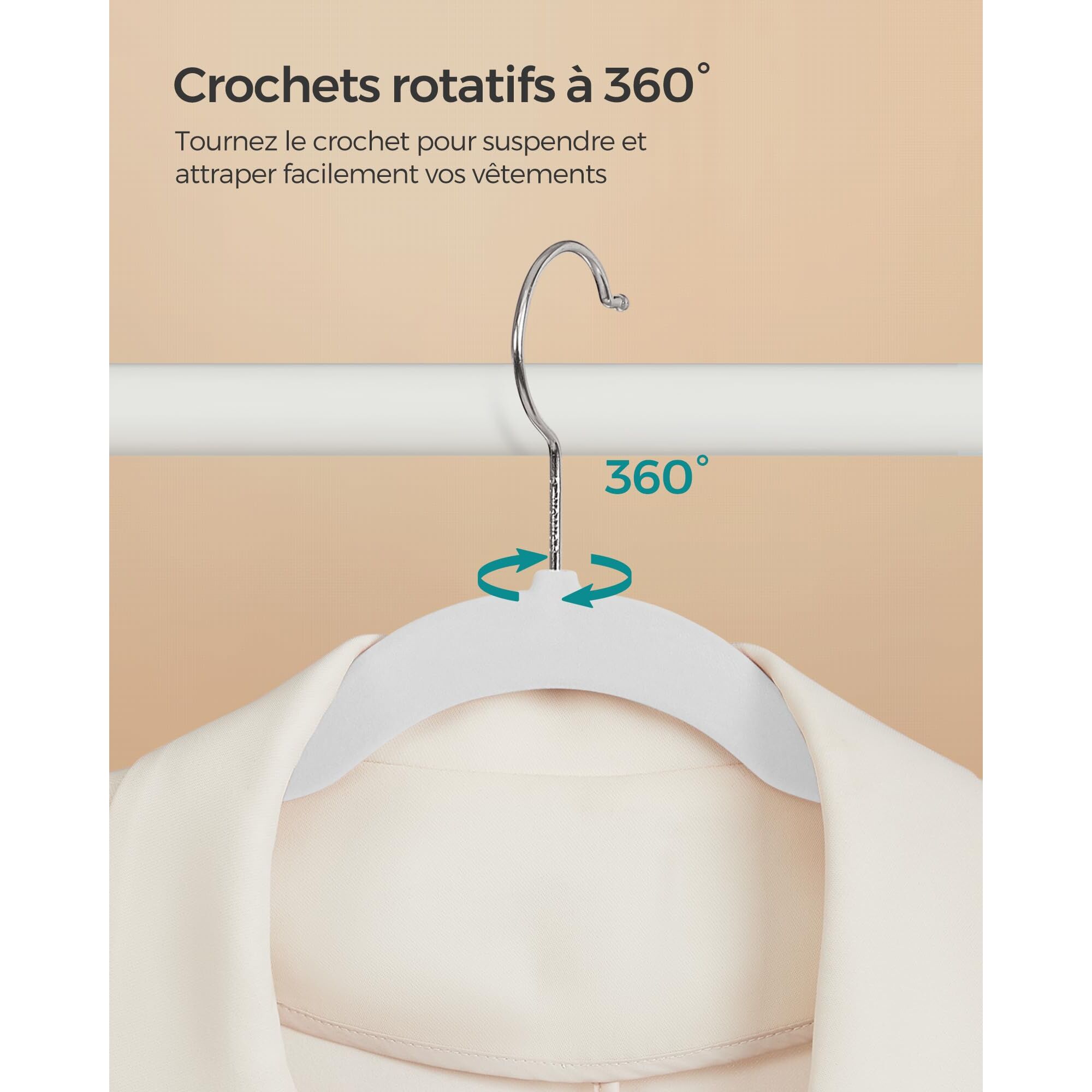 SONGMICS Kleiderbügel Samt, 20er Set, Bügel, Jackenbügel, 41,5 cm breit, Anzugbügel, dünn, gut belastbar, um 360° drehbarer Haken, für Mäntel, Hemden und Anzüge, weiss CRF026W20