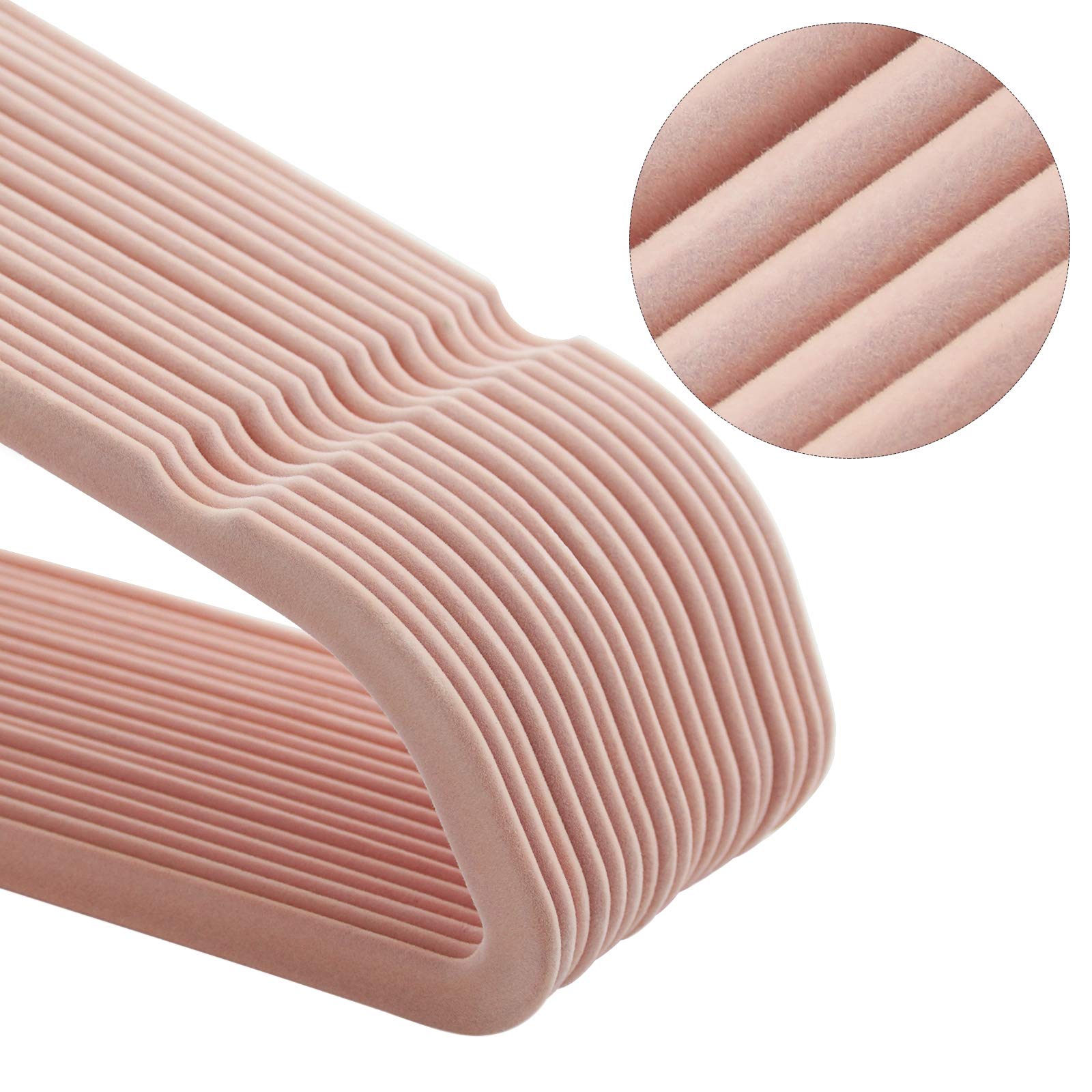 SONGMICS Kleiderbügel Samt, 50er Set, Jackenbügel, 41,5 cm breit, Anzugbügel, dünn, gut belastbar, um 360° drehbarer Haken, für Mäntel, Hemden und Anzüge, Rosa-Silber CRF026P03