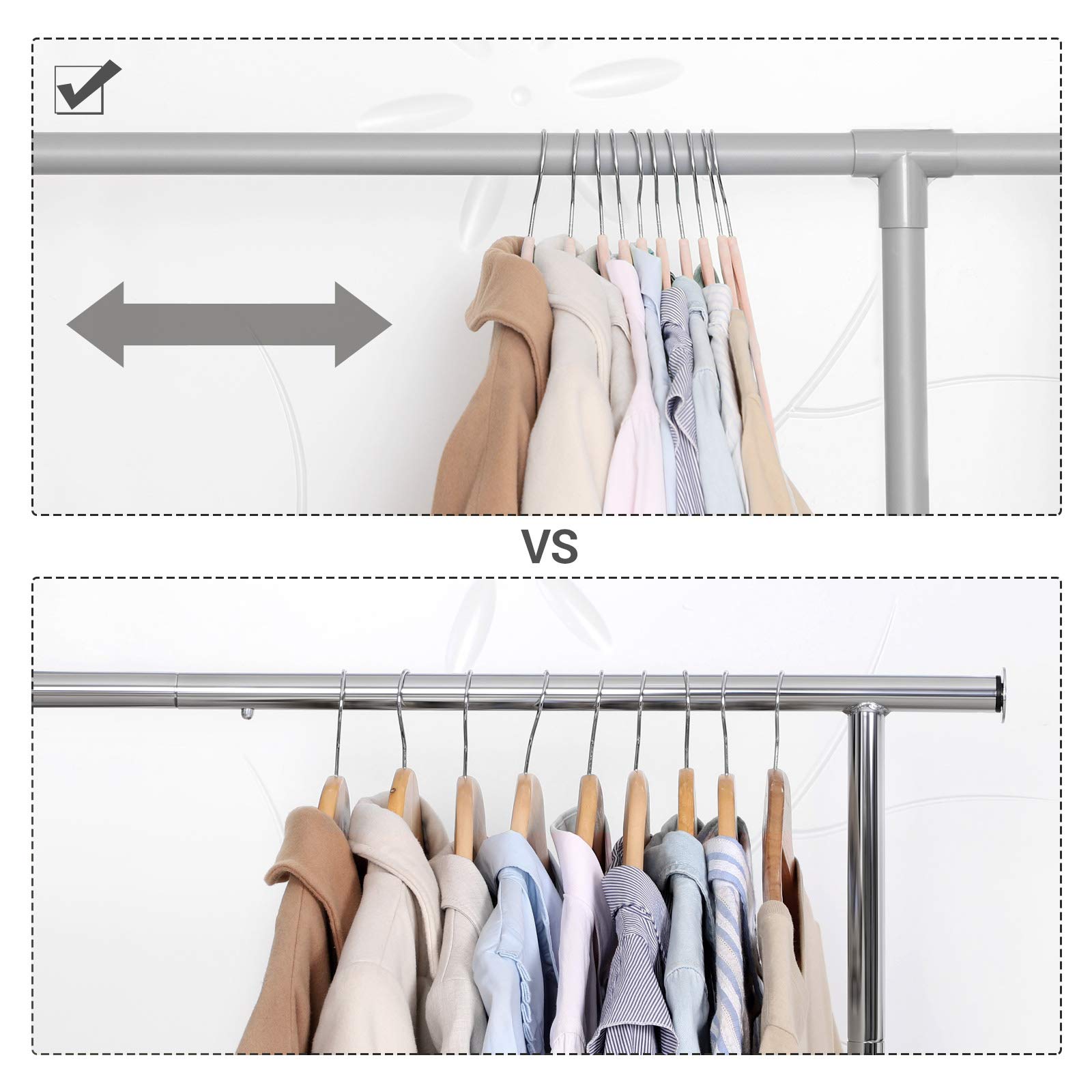 Möchten Sie mehr Kleidung im Schrank aufhängen? Dann ist die Auswahl von dünnen Bügeln eine sehr einfache Möglichkeit, dieses Ziel zu erreichen. Diese sollten aber natürlich auch hochbelastbar sein – wie diese Samtbügel von SONGMICS. Jeder Bügel ist nur 0,6 cm dick, jedoch mit bis zu 5 kg belastbar. Hierdurch können Sie den Raum im Schrank optimal ausnutzen, denn die Bügel selbst nehmen wenig Platz weg.