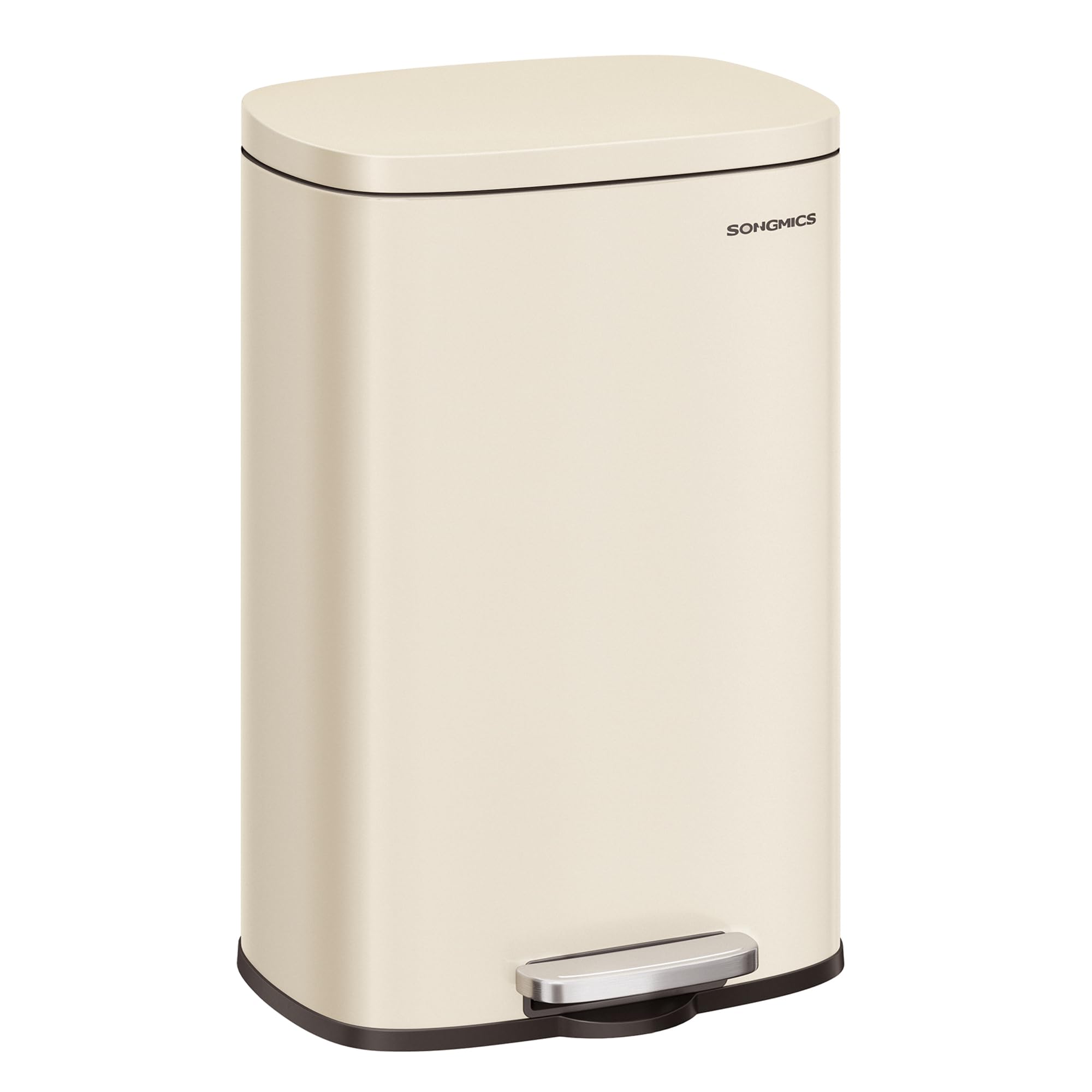 SONGMICS Mülleimer Küche, 50 Liter, Abfalleimer, Treteimer, mit Deckel, Softclose, Fusspedal, Stahl, Inneneimer, sandbeige LTB050A02