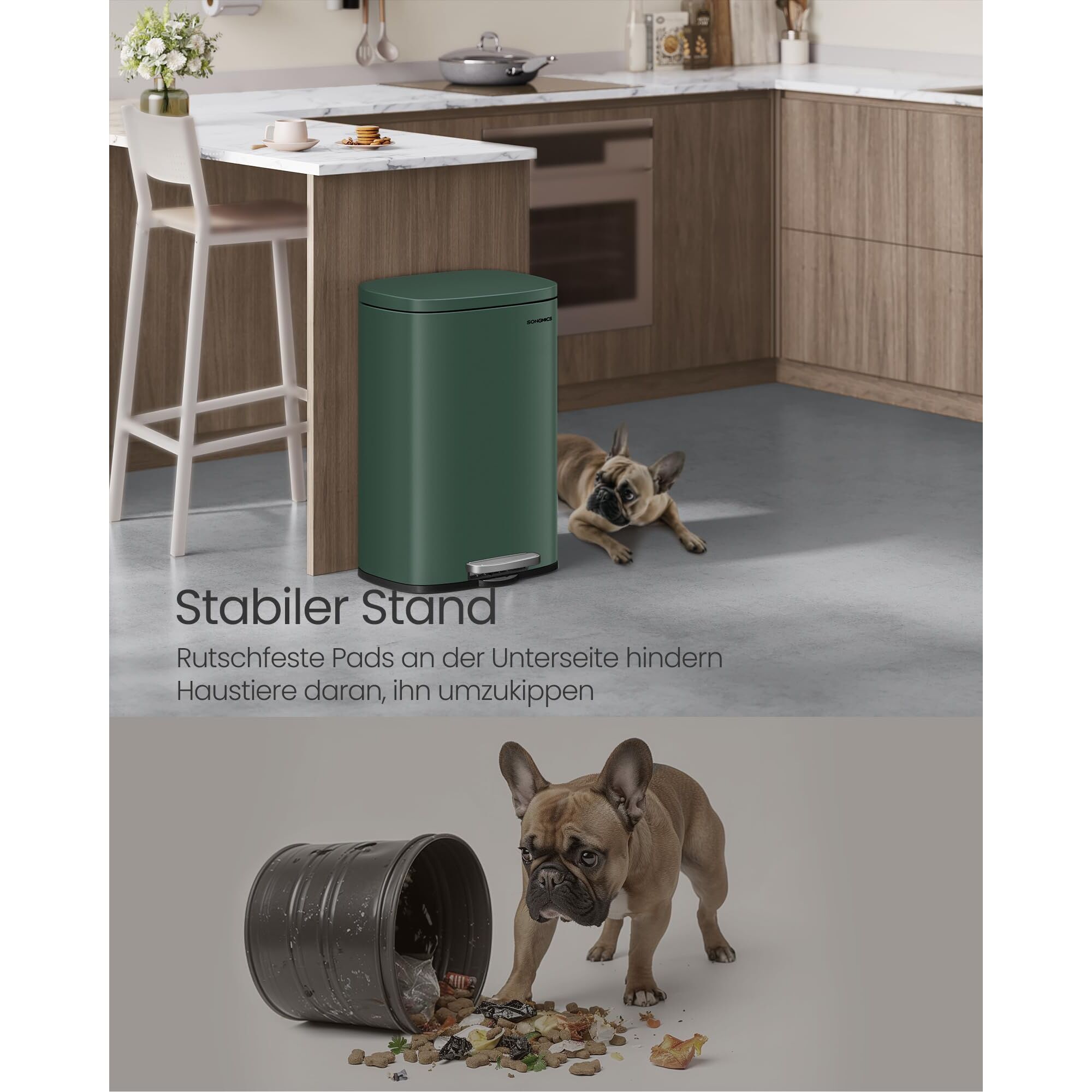 - Der Mülleimer ist nur für den Innenbereich geeignet.