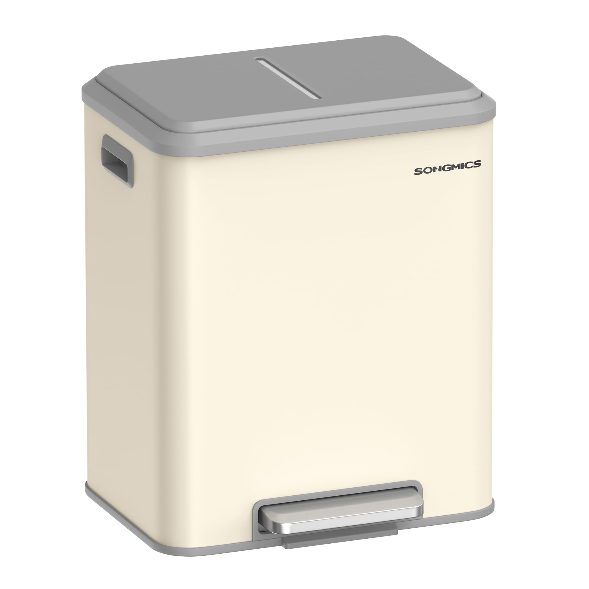 SONGMICS Mülleimer Küche, Mülltrennsystem 2 x 15 L, 2 Fächer für Recycling und Restmüll, Abfalleimer, Inneneimer, Stahl, Softclose-Deckel, breites robustes Pedal, sandbeige LTB544A02